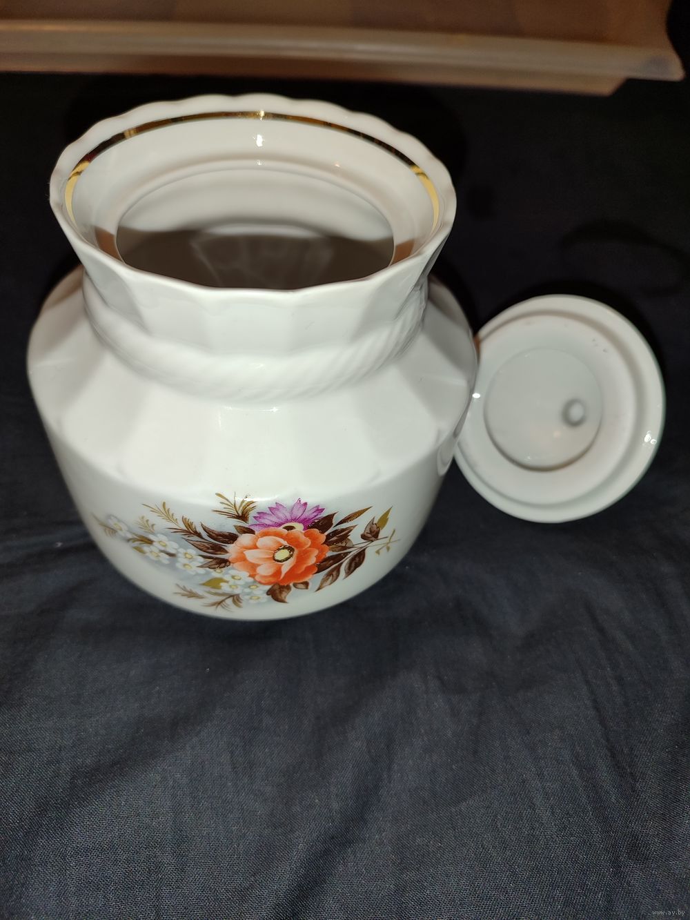 У одной чайной пары тарелка повреждена, пара кружек использовались, чайник и сахарница - состояние новых.