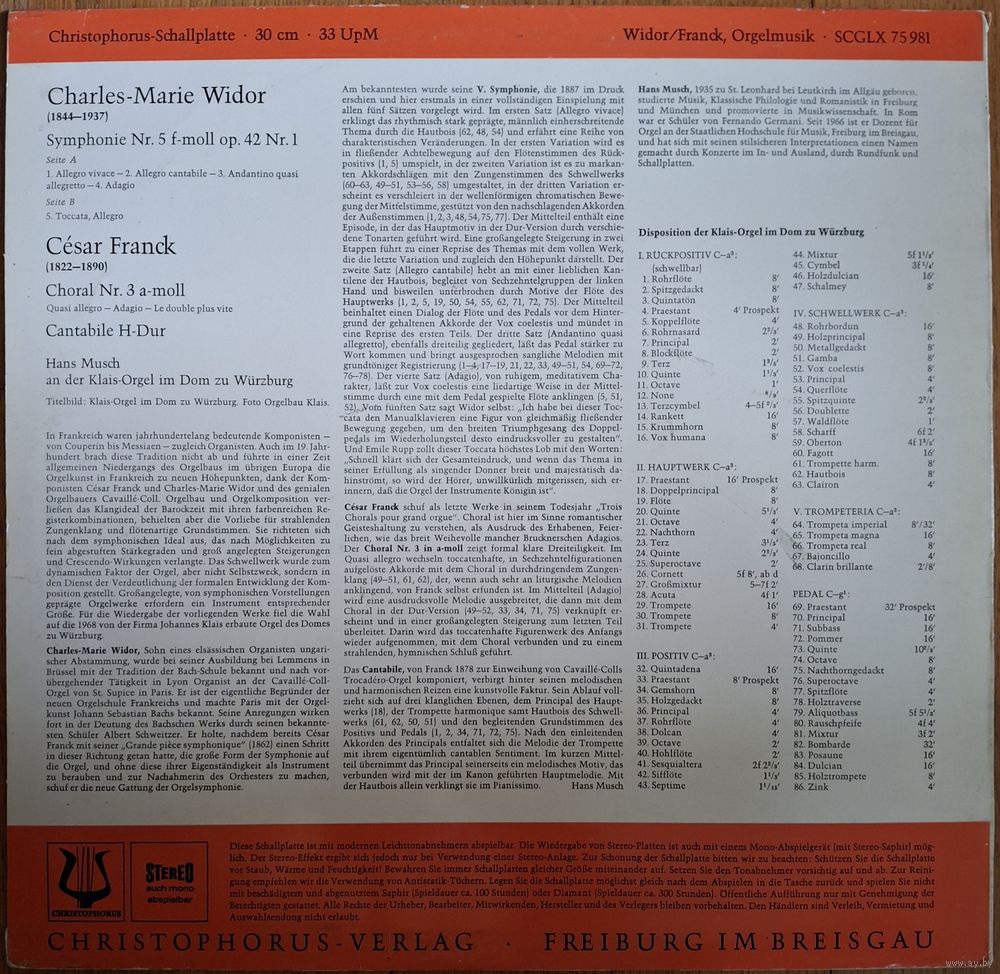 Charles-M. Widor. Cesar Franck. Hans Musch – 5. Symphonie / Choral A-Moll / Cantabile