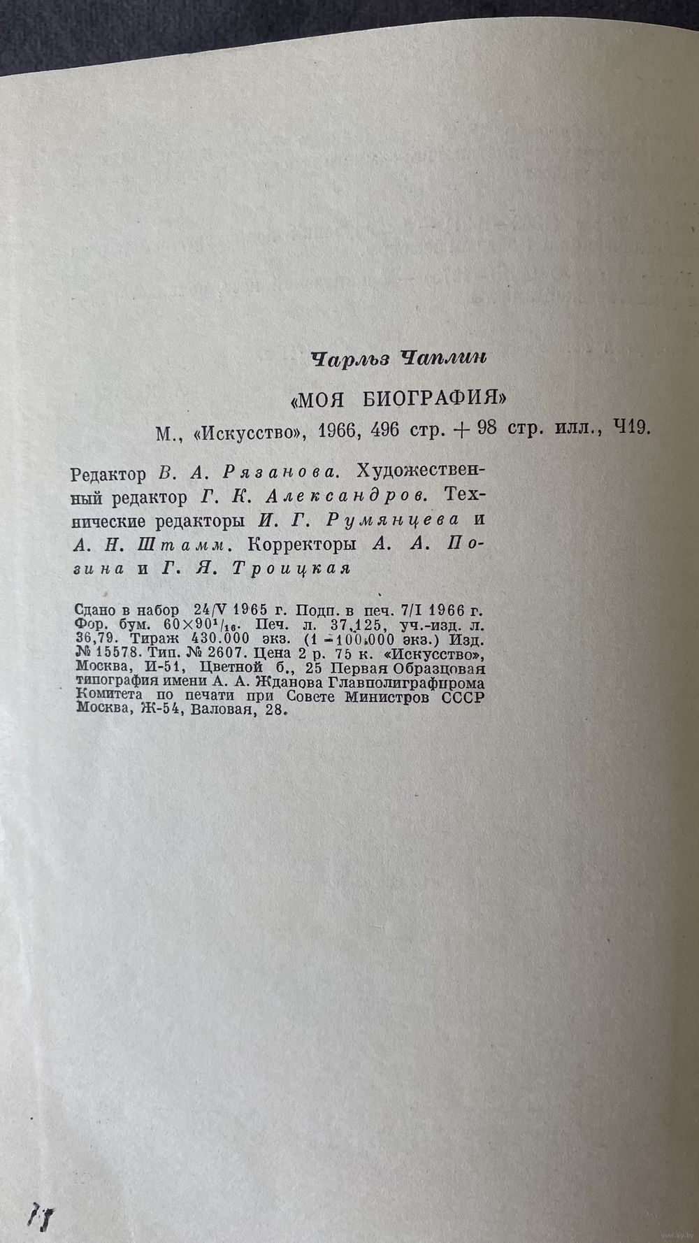 Биография Чарльз Чаплин 1966 года. Тираж 460 000. В хорошем состоянии, все нюансы видны на фото