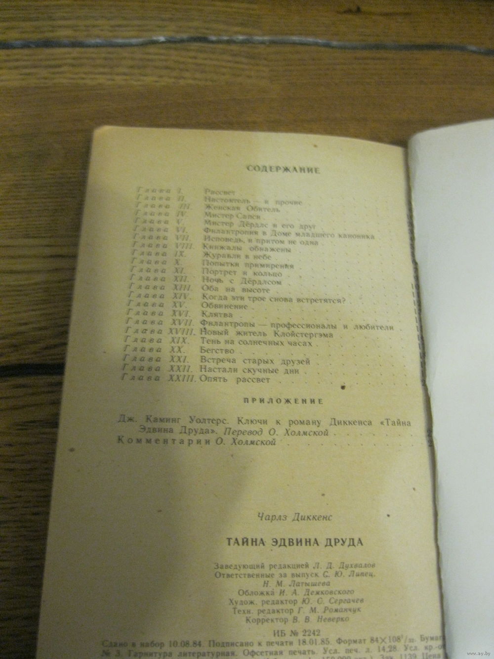 Чарльз Диккенс Тайна Эдвина Друда мягкая обложка на ней дефекты надрыв и подмята ,Минск вышэйшая школа 1985 г.без торга и обмена.ПОЧТАМИ НЕ ОТПРАВЛЯЮ ВООБЩЕ.Только самовывоз г.Минск ул.П.Панченко !!!!!