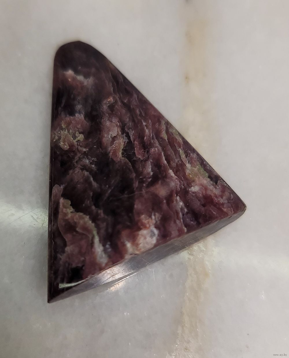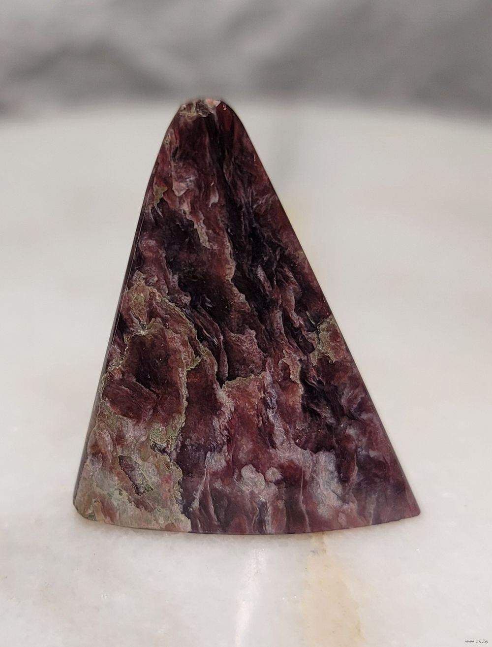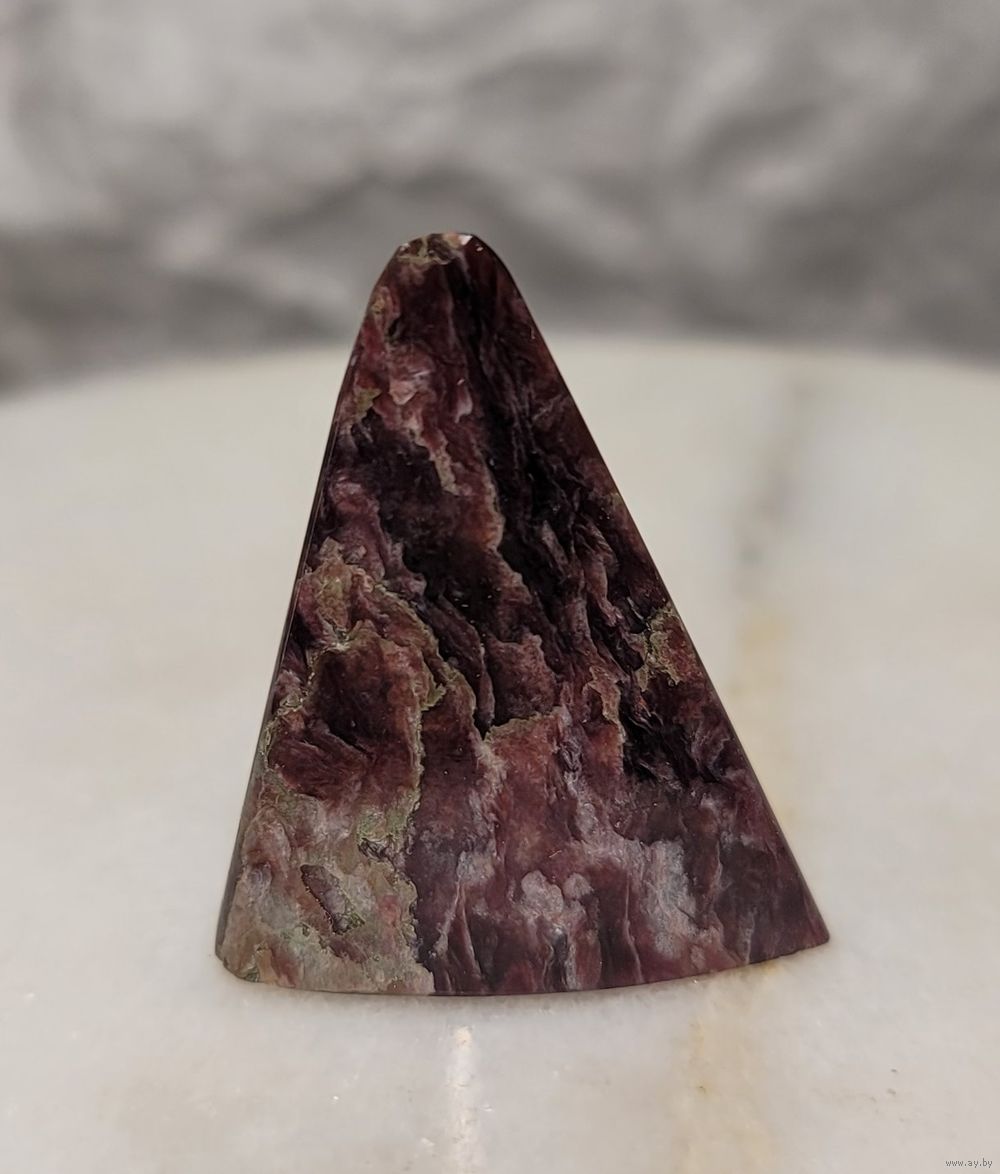 Чароит полированный в виде треугольника Размер сторон 3.6 см х 3.4 см х 2.7 см Основания 0.6 см Вес 6.25 гр
