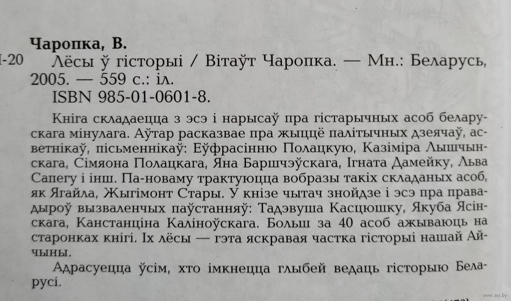 «Лёсы ў гісторыі» - рассказывают о знаменитых лицах нашего прошлого, при этом это не просто сборник биографий, Витовт Чаропко пытается проникнуть в саму суть, выясняет причины творческих успехов и неудач, того, что именно пытались донести до нас наши далёкие предки и что именно подвигло их на великие творения. Кем они были в ту далёкую эпоху и какую роль сыграли в истории не только родных белорусских земель, но и всей эпохи. Так, описывая деятельность Симеона Полоцкого, автор отмечал его большое влияние на становление личности царевичей Алексея и Фёдора, именно он посоветовал для Петра (в будущем – Великого) – наставника Никиту Зотова. Симеон стал пленником русских во время одной из московско-польских войн, как талантливый мыслитель увезён в Москву, где стал наставником царской семьи. Именно благодаря трактатам и учению Симеона Россия в будущем «прорубила окно в Европу» и кардинально изменила курс развития всей русской цивилизации.