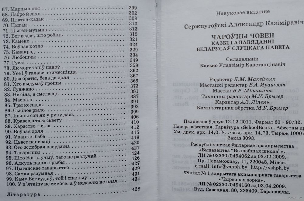 Тыраж 1000 экз. 448 стар. Высокаадукаваны этнограф і фалькларыст А.Сержпутоўскі творча адносіўся да збірання жамчужын беларускай вуснапаэтычнай творчасці, не спяшаўся браць усё, “што Бог паслаў”. Ён шукаў і знаходзіў таленавітых расказчыкаў, запісваў творы, якія адрозніваліся высокім майстэрствам. У выніку запісы Сержпутоўскага ўключаюць фальклорныя творы, у якіх новы змест спалучаецца з іх старажытнай мастацкай асновай, так што водгукі глыбокай старажытнасці не заглушалі сучаснасці ў творах народнай фантазіі.