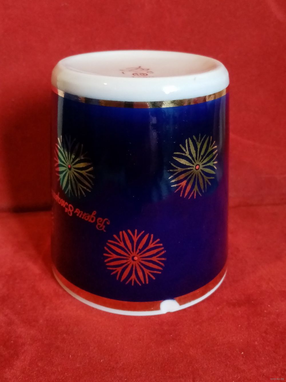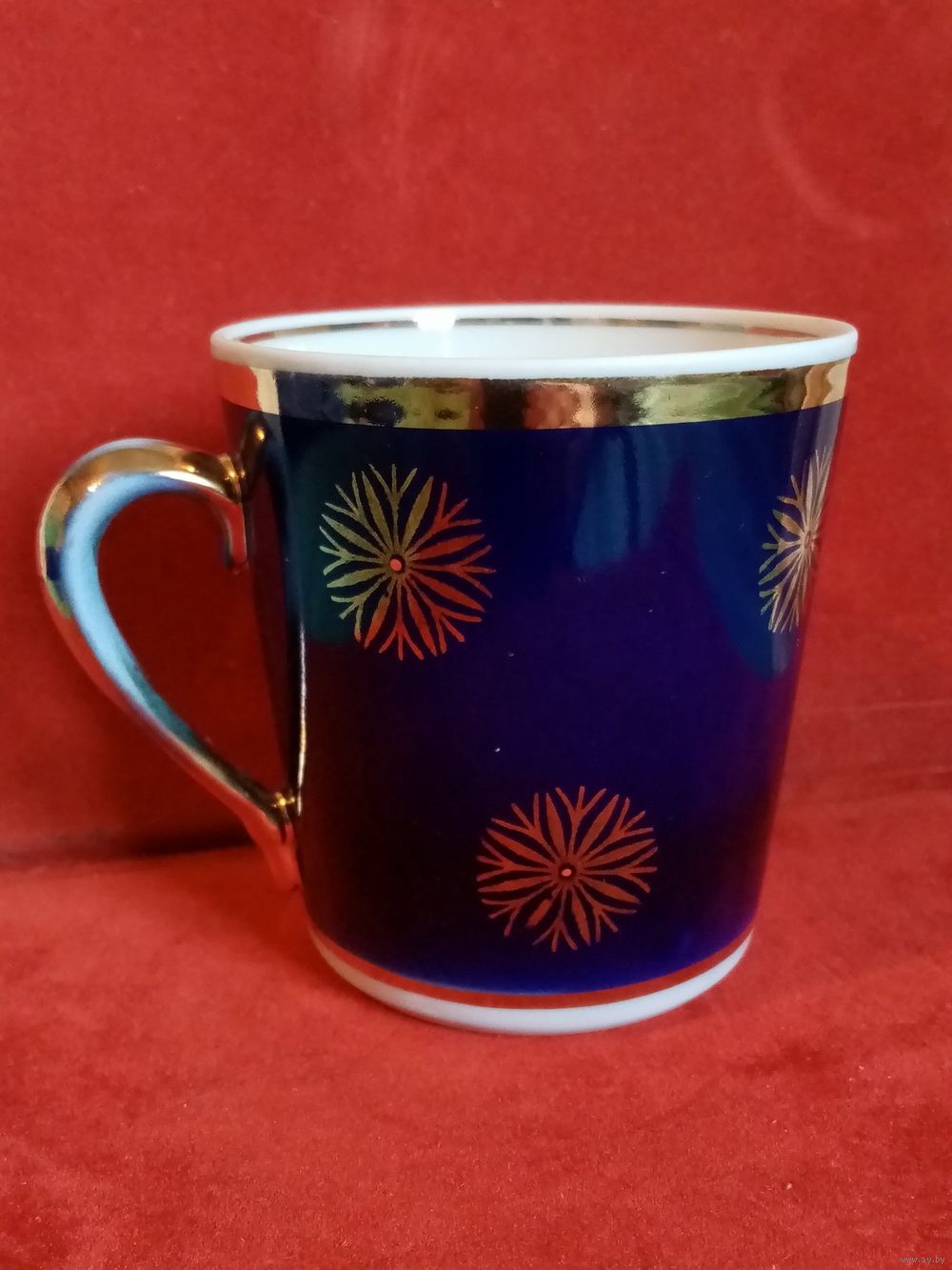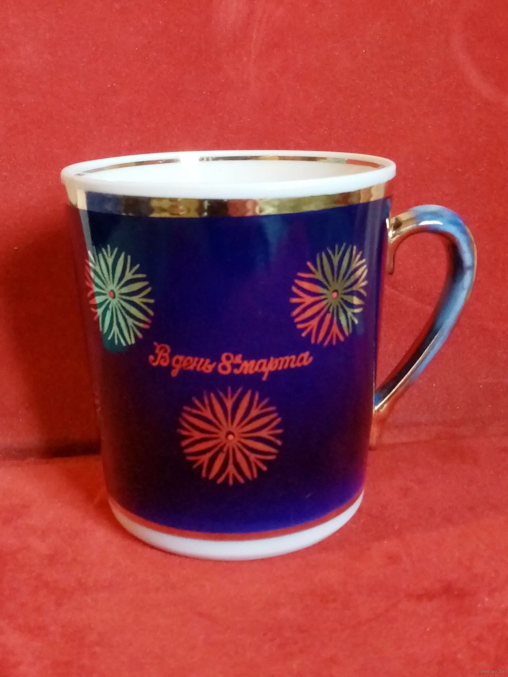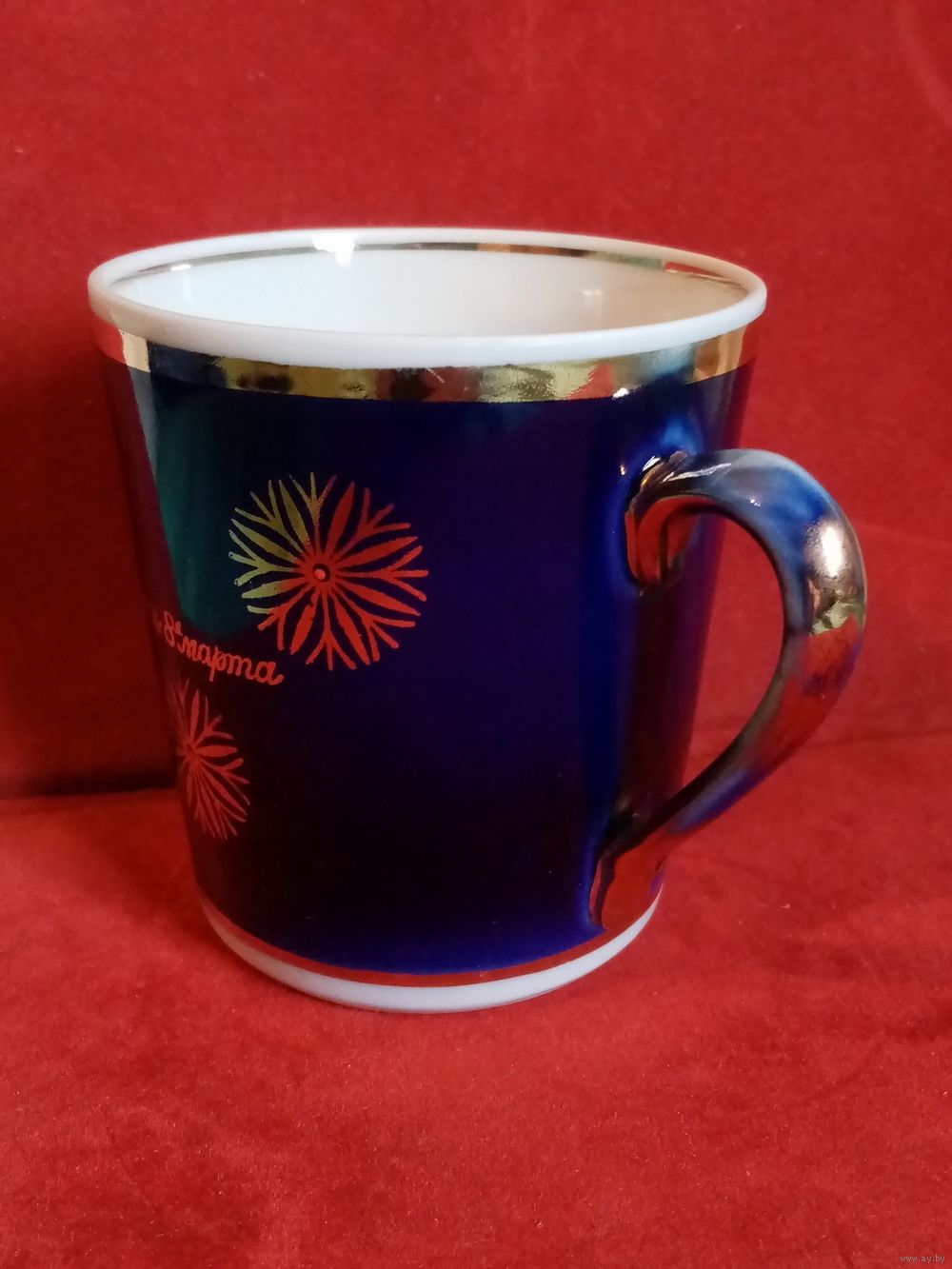 Чашка 400 мл В день 8 марта Довбыш кобальт позолота СССР с дефектом