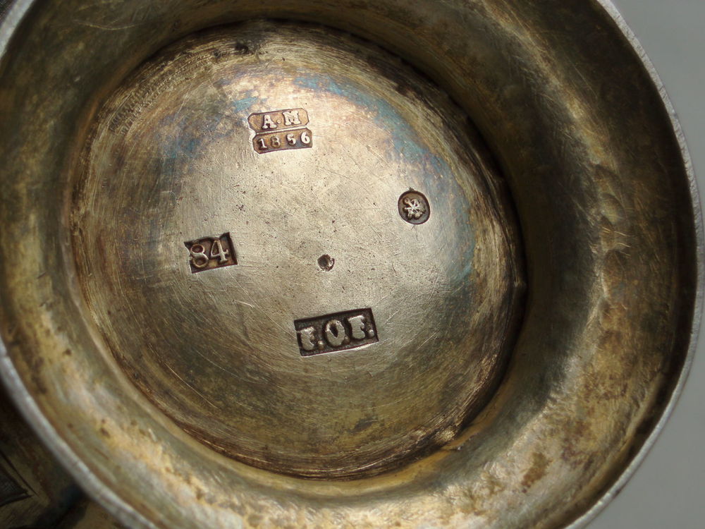 | Клеймо мастера F.O.F. Пробирное клеймо А.М. Серебро 84 + позолота. Вес 113,83 гр.. Высота 7,8 см | |