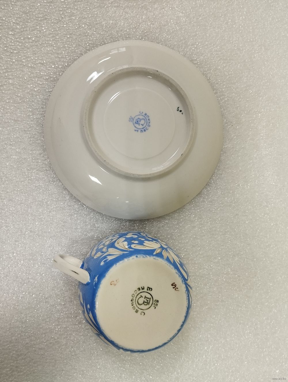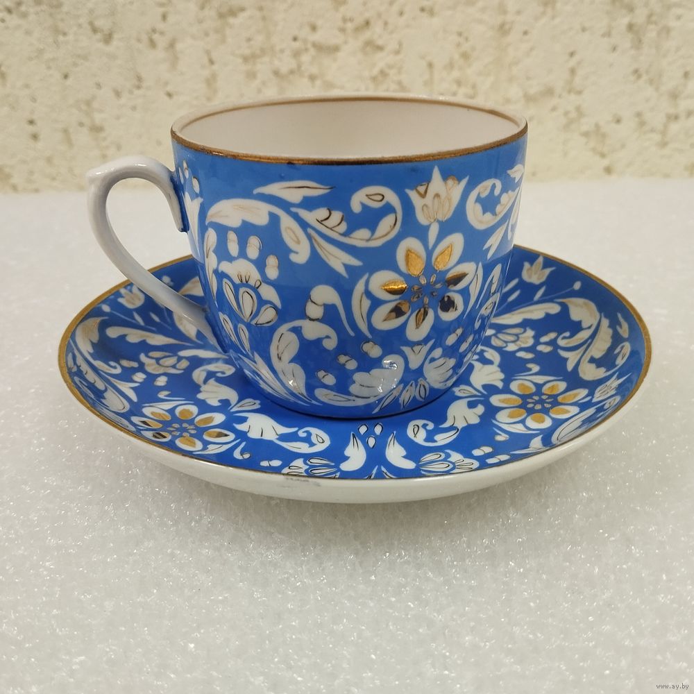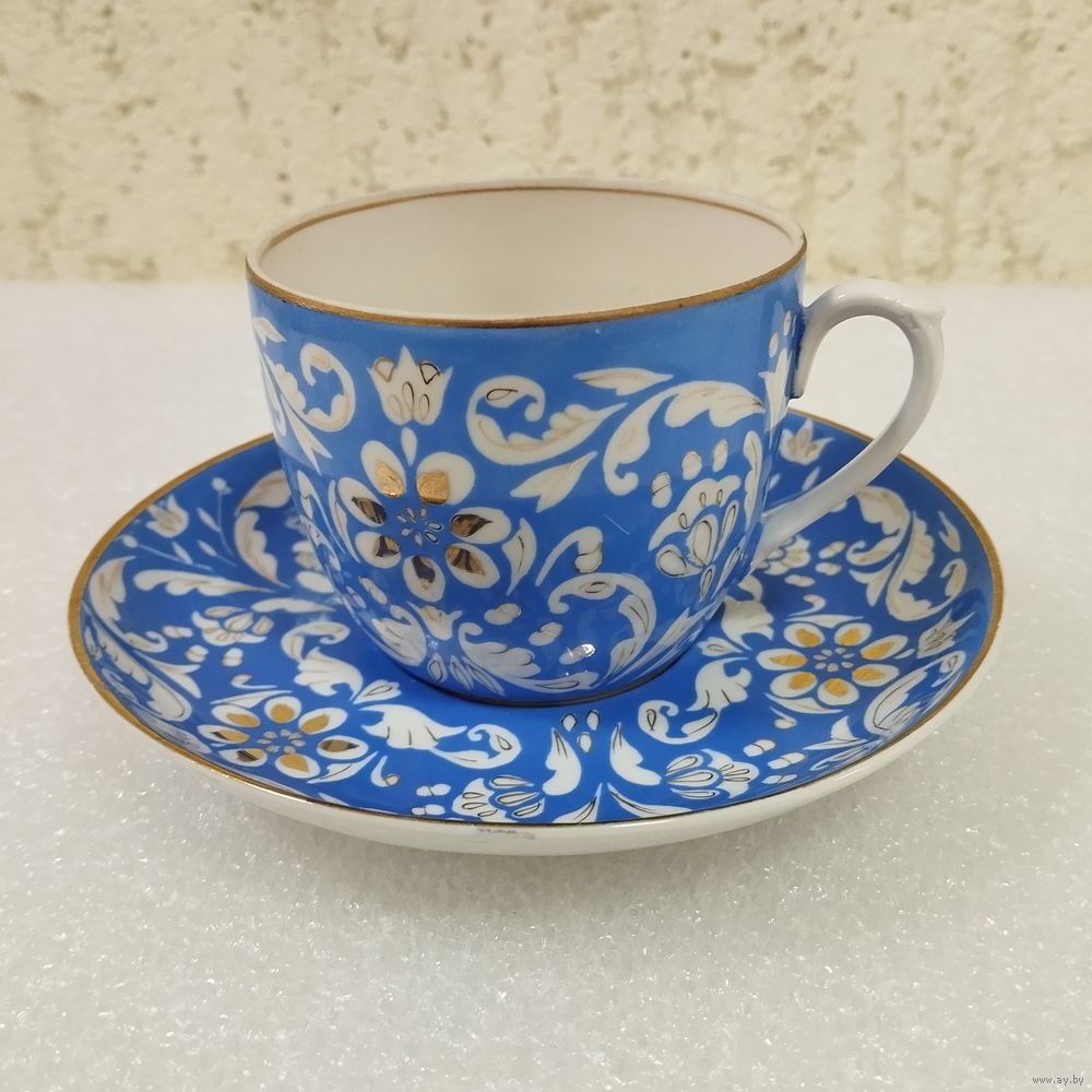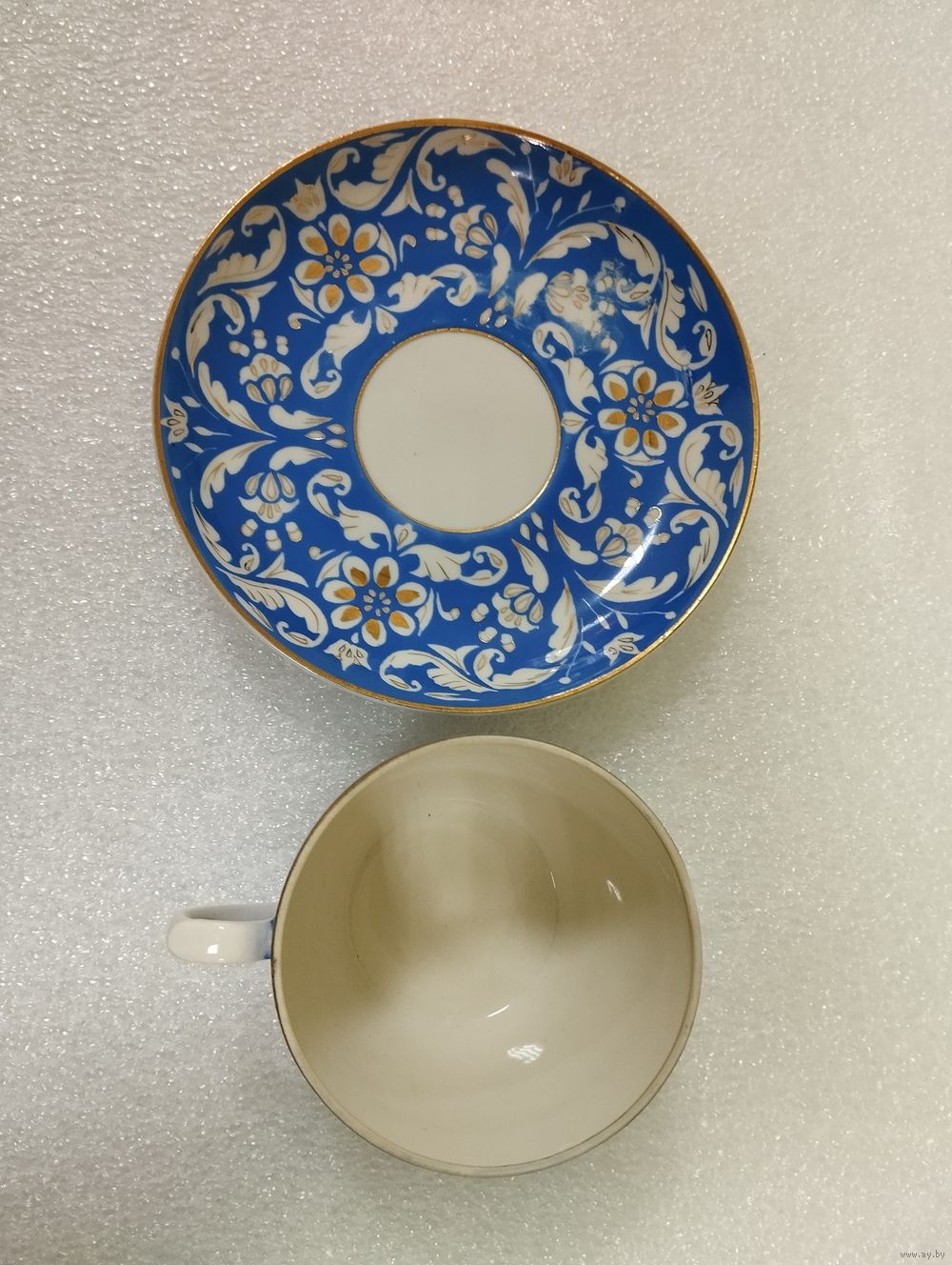 Чашка с блюдцем (чайная пара 250 мл) Незабудки. Песочное 1955 г