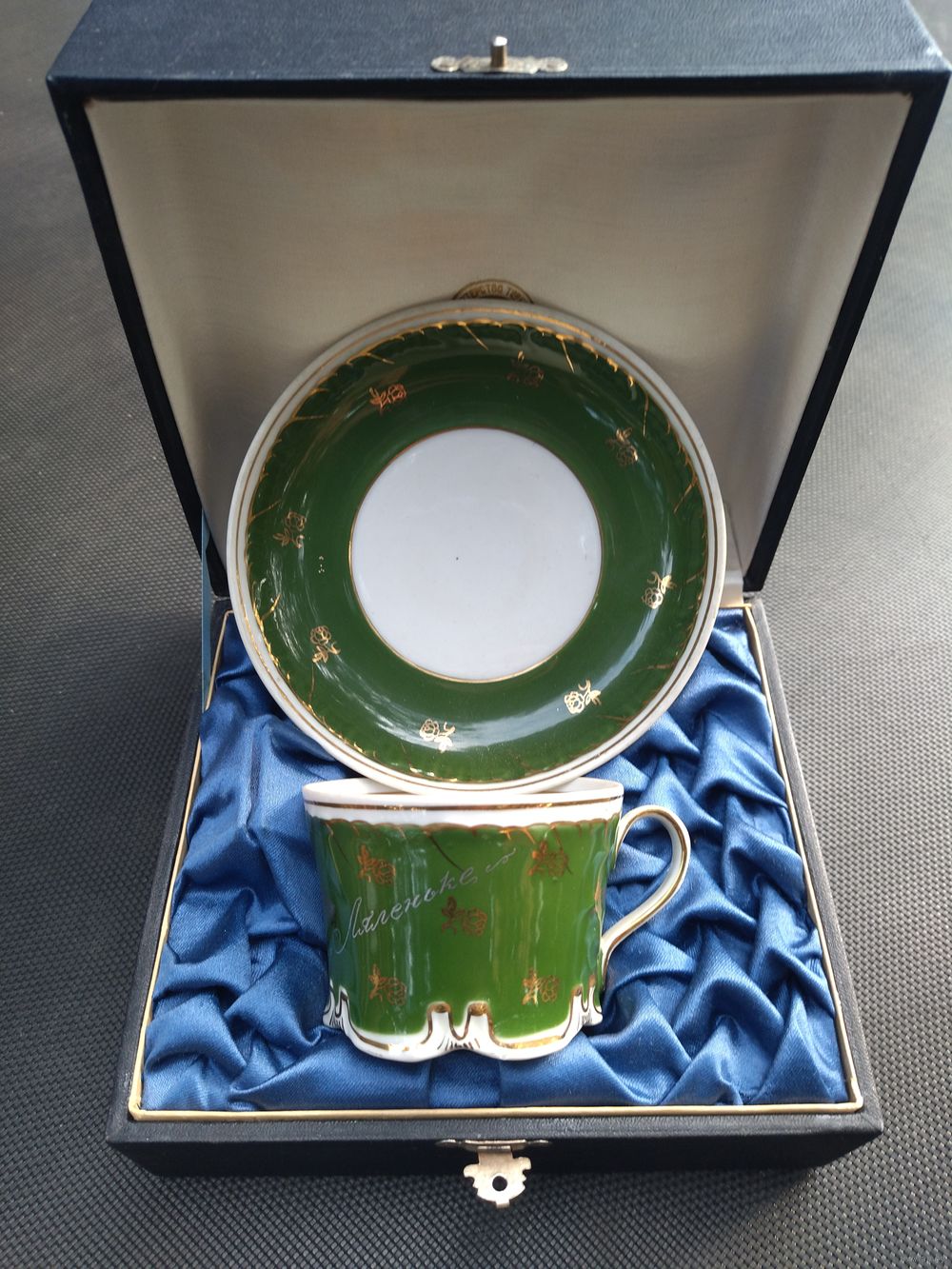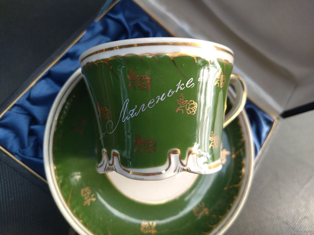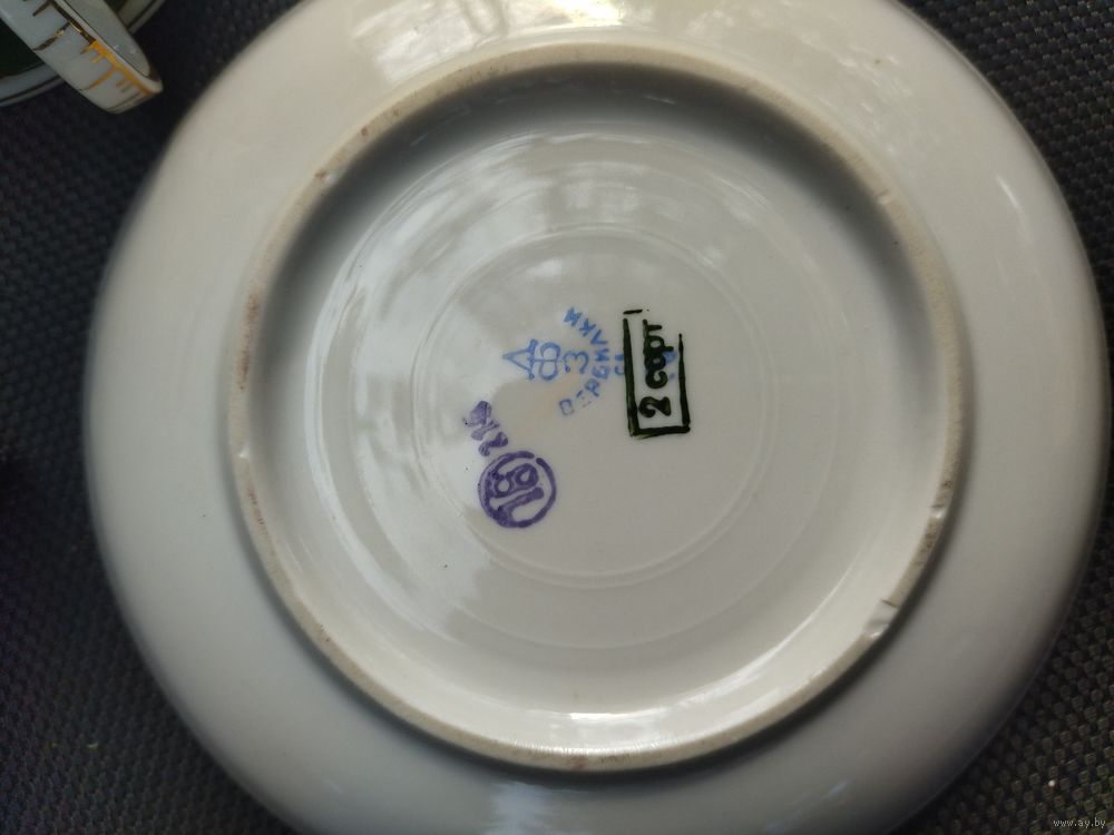 Блюдце диаметр 14 см, высота чашки 5 см. Подпись на чашке