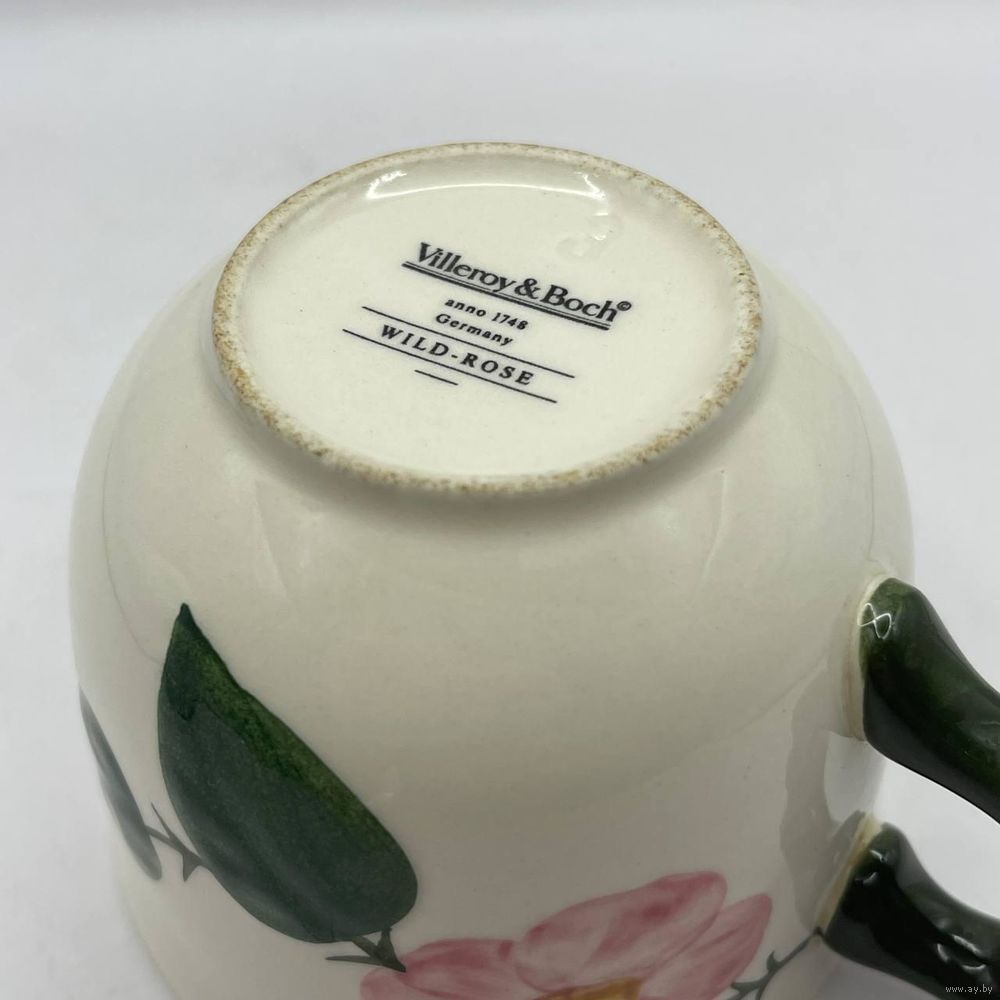Винтажная фаянсовая чашка Villeroy & Boch, серия Wild-rose с ручной подглазурной росписью на рельефных цветах. Германия. Клеймо (1980-е г.г.). Высота чашки 6,5 см, диаметр 8,5 см, объем 200 мл.