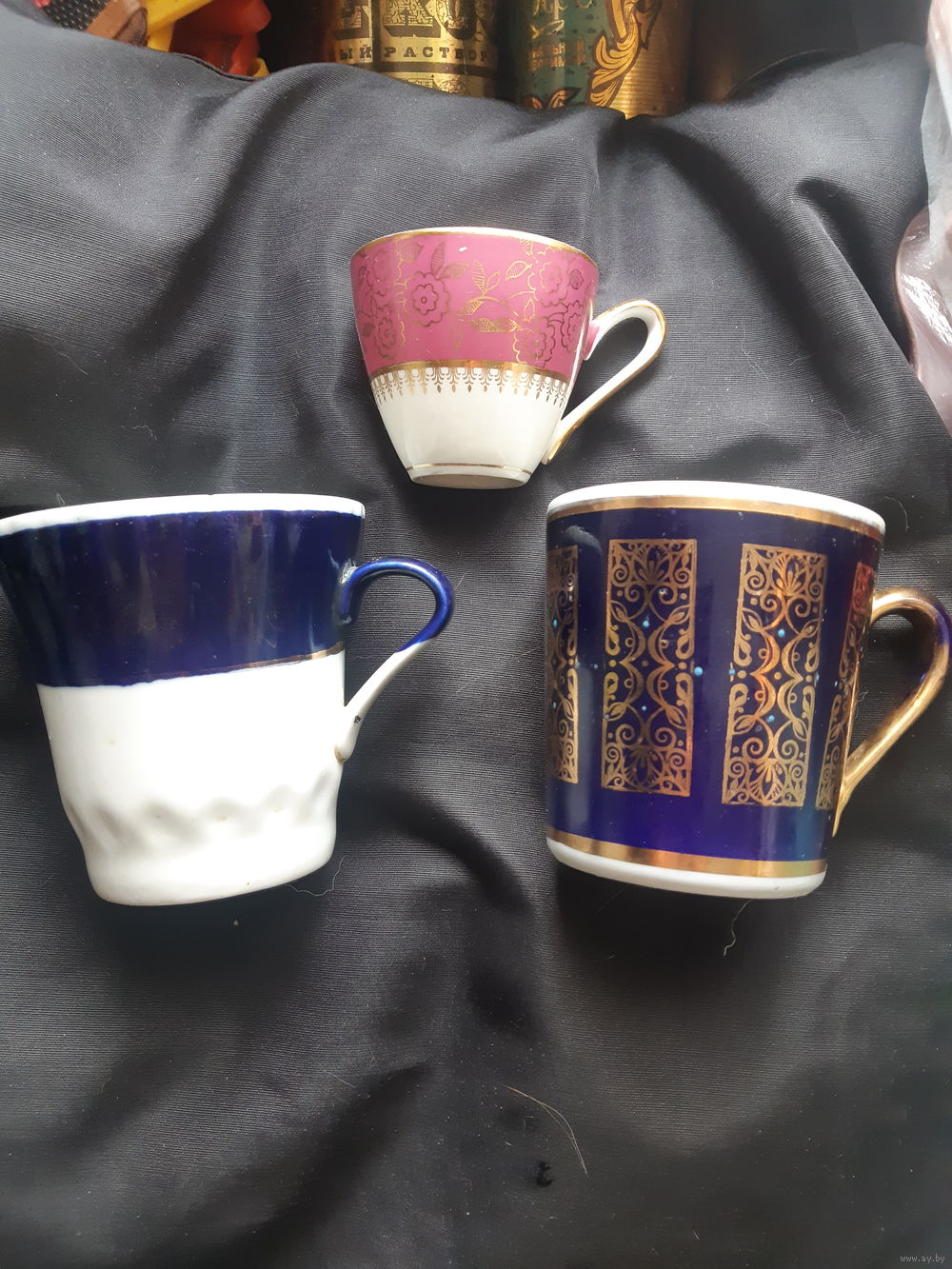Две кобальтовые большие, позолота у одной - огонь! Чешская кофейная очень изящная, много позолоты.