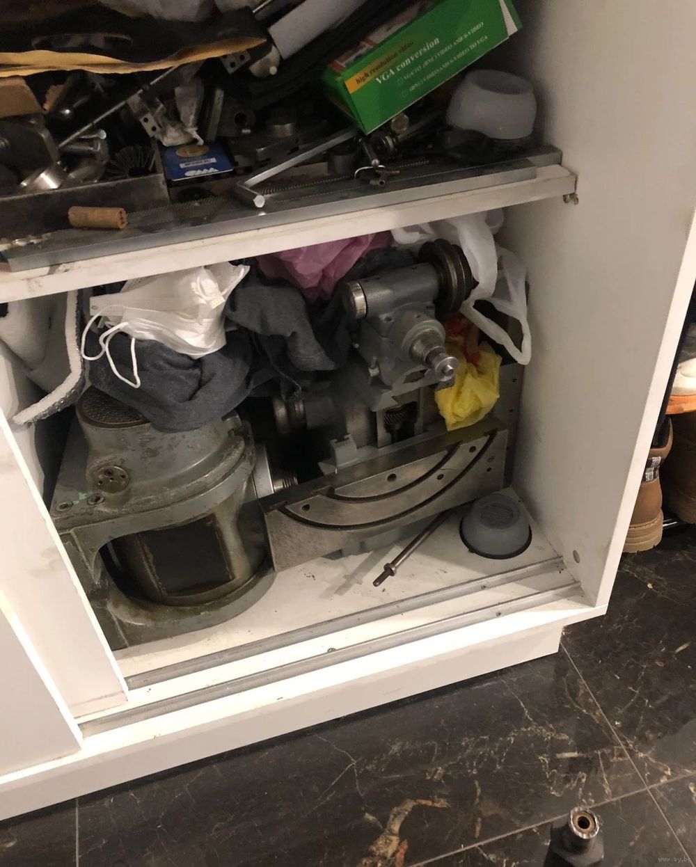 В лот входит станок, угловой столик ( внешне винты под тиски, внутри пазы под прижимы)
