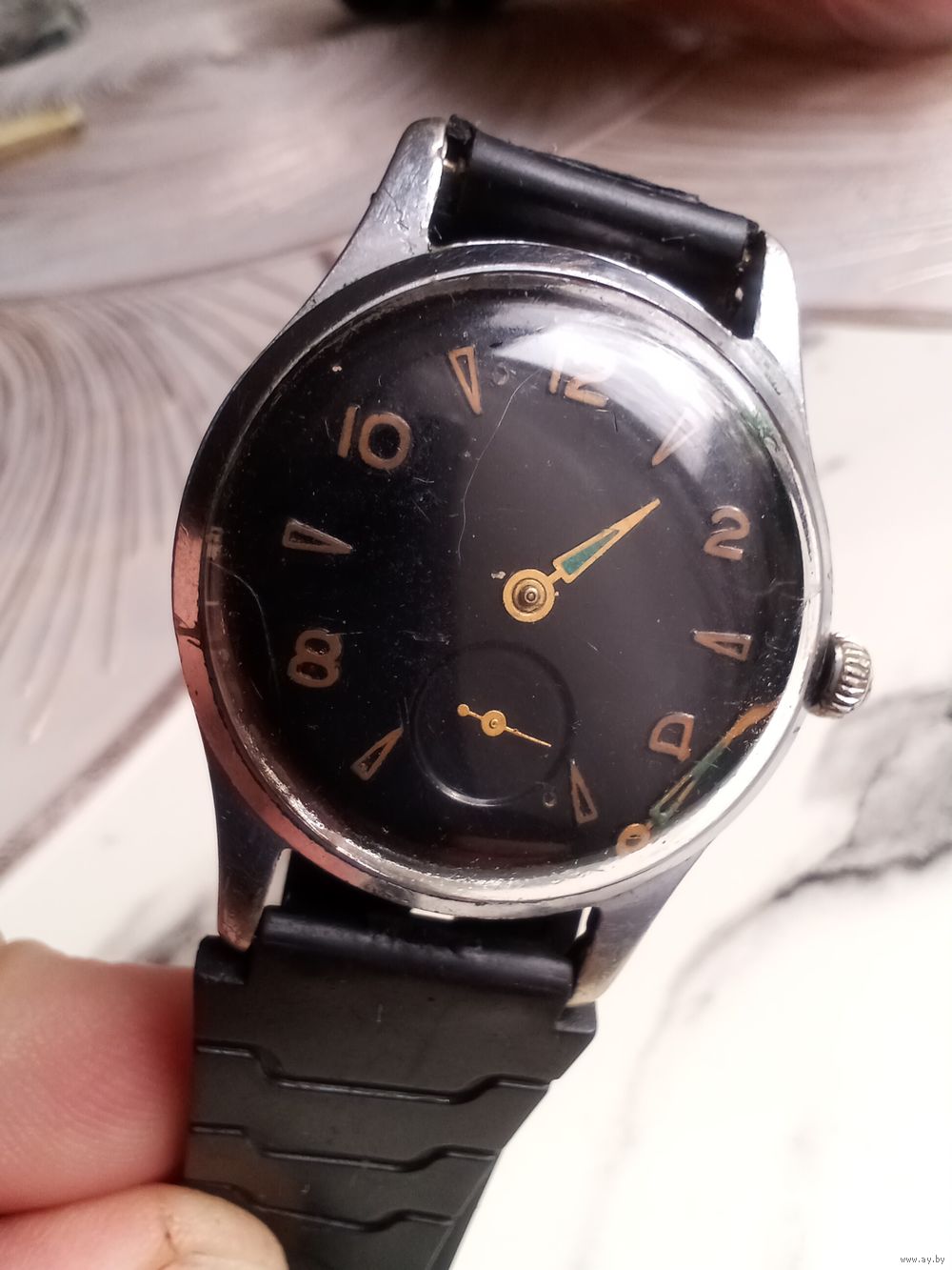 Продаются рабочие часы в коллекцию. Соответствуют возрасту. Кажется "Кама" . Стрелки на место поставить и обслужить. На стекле есть царапина.