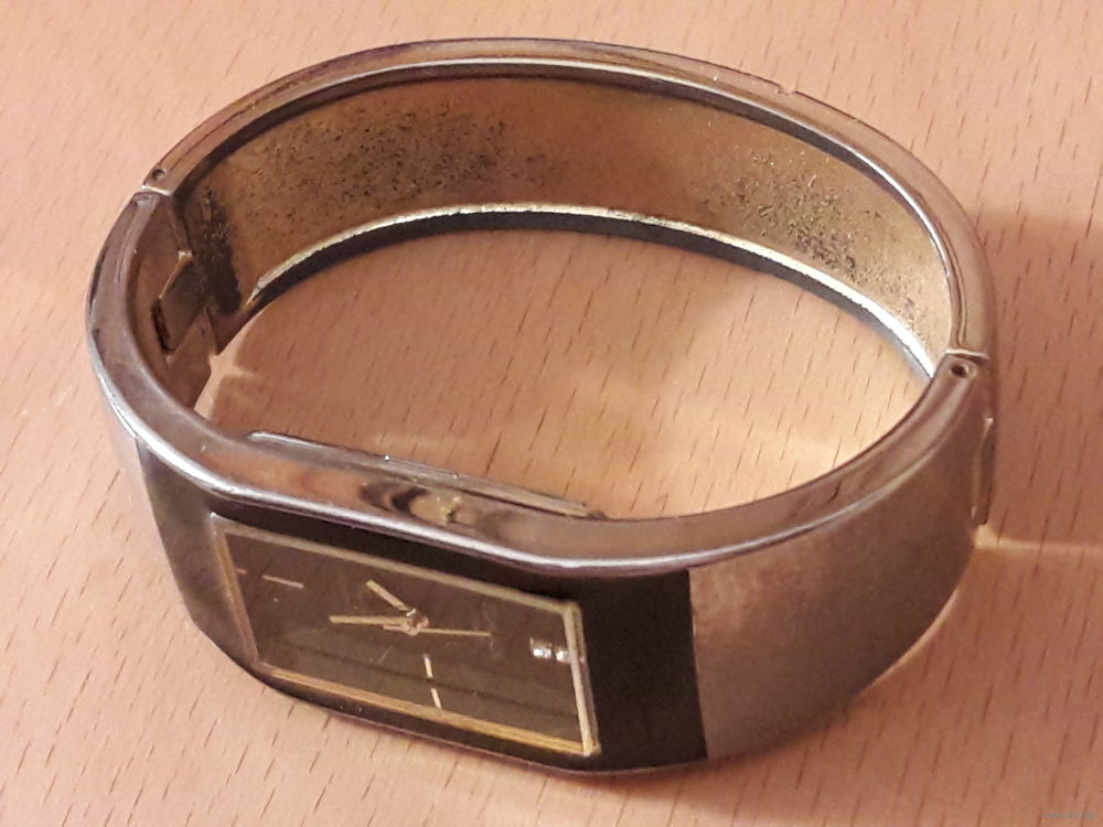 Идут. Точность хода не проверялась. Браслет внутри золотистый с крапинками, снаружи серебристый, вытерся от времени, имеется небольшая забоина (фото 7). Замок работает.