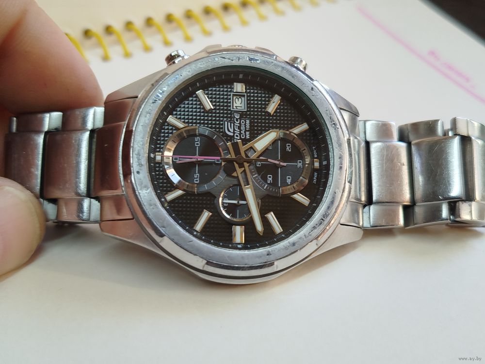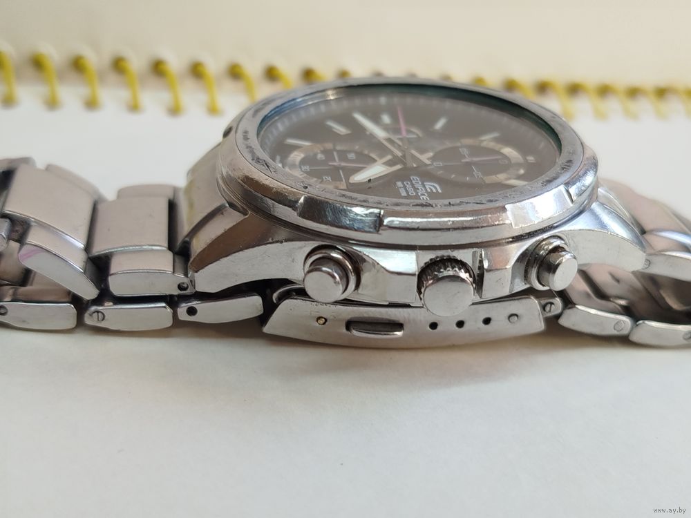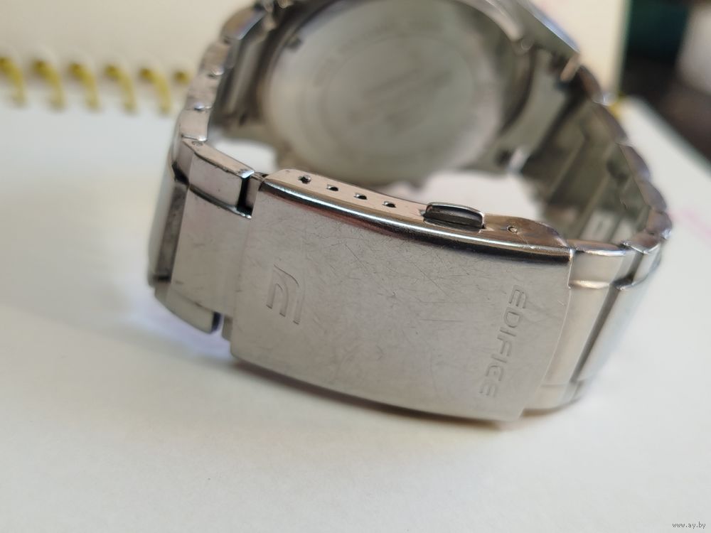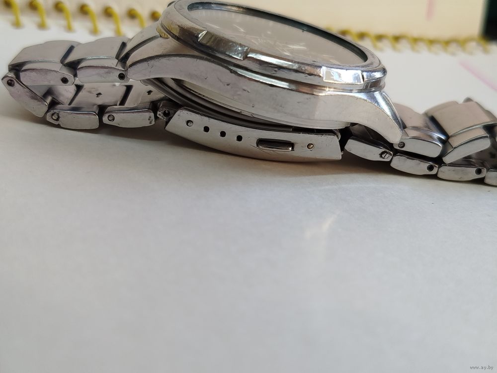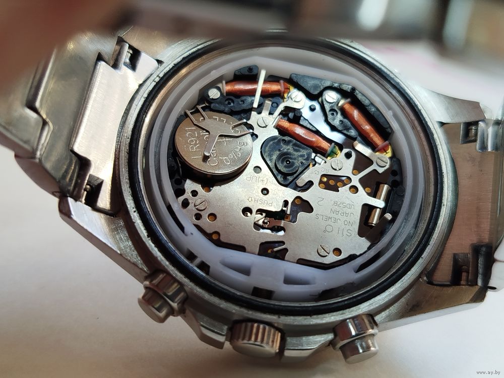 Часы на ходу! Полностью исправные,В часах стоит новая батарейка,на кнопке запуска хронографа сломан штифт который нажимает на рычаг(см.Фото).(Подложена пластиковая подложка для нажатия) Хронограф запускается и сбрасывается исправно)