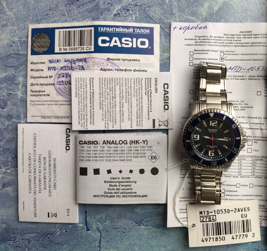 Часы «Casio MTD-1053D-2A» оригинал (модуль 2784) новые в упаковке.Корпус стальной,стекло минеральное,мехнанизм кварцевый,водозащита WR 200 метров (20 Bar)-можно свободно купаться,светящиеся стрелки,крышка с винтовым фиксатором,базель с односторонним вращением,стальной браслет с застежкой ширина 20 мм по ушку,отображение даты,завинчивающаяся головка,вес 142 гр.,диаметр,диаметр 42 мм с,толщина 11.5 мм.