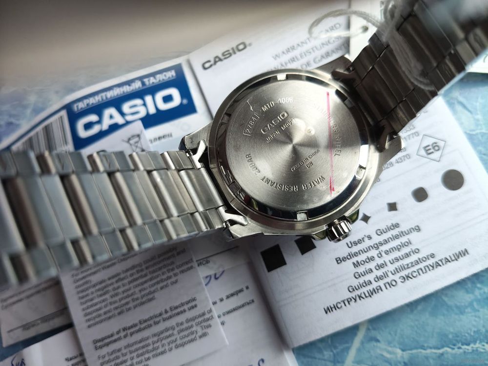 Часы «Casio MTD-1053D-2A» оригинал новые в подарочной упаковке,полный оригинальный заводской комплект.Корпус стальной,стекло минеральное,мехнанизм кварцевый (модуль 2784),водозащита 200 метров (20 Bar)-можно свободно купаться,светящиеся стрелки и цифры,крышка с винтовым фиксатором,базель с односторонним вращением,стальной браслет с застежкой ширина 20 мм по ушку,отображение даты,завинчивающаяся головка,вес 142 гр.,диаметр,диаметр 42 мм с,толщина 11.5 мм.