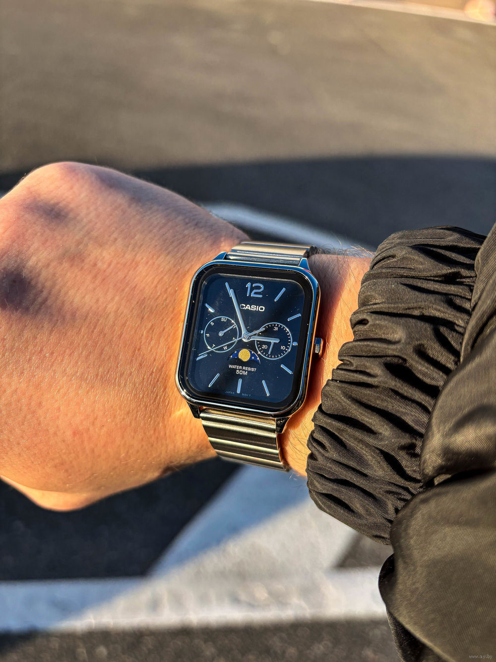 Фаза луны на часах соответствует фазе луны в жизни, сама фаза отдельно настраивается с помощью кнопки регулировки на корпусе часов