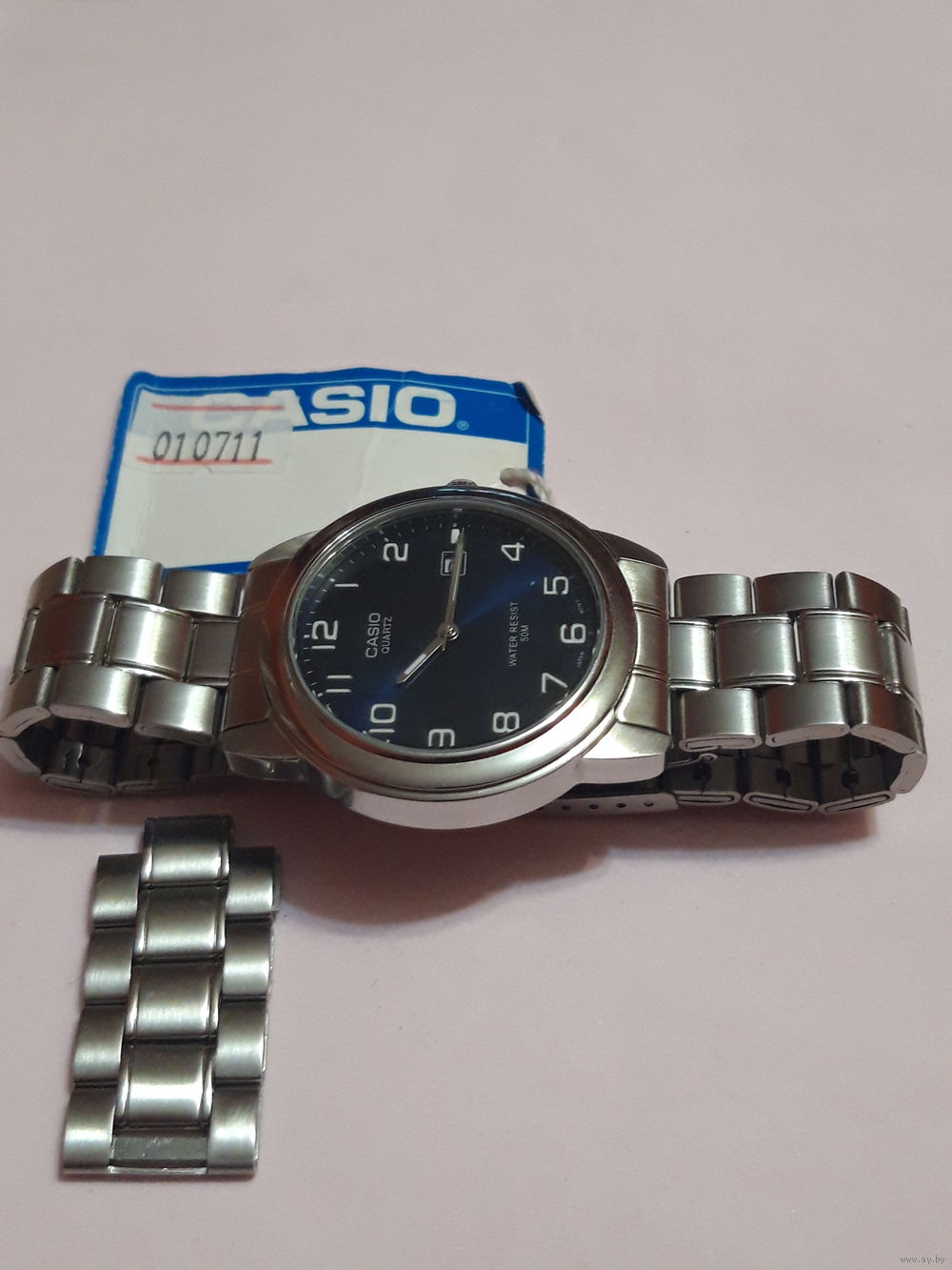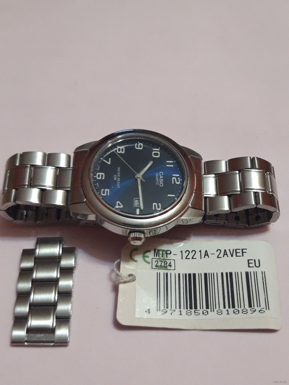 Часы на ходу. Модель MTP-1221A-2AVEF. Дата выпуска 01.07.11. (Бирка). Чёрно-синий циферблат. Идут точно. Обслужены. Новая батарея. Дополнительные звенья.
