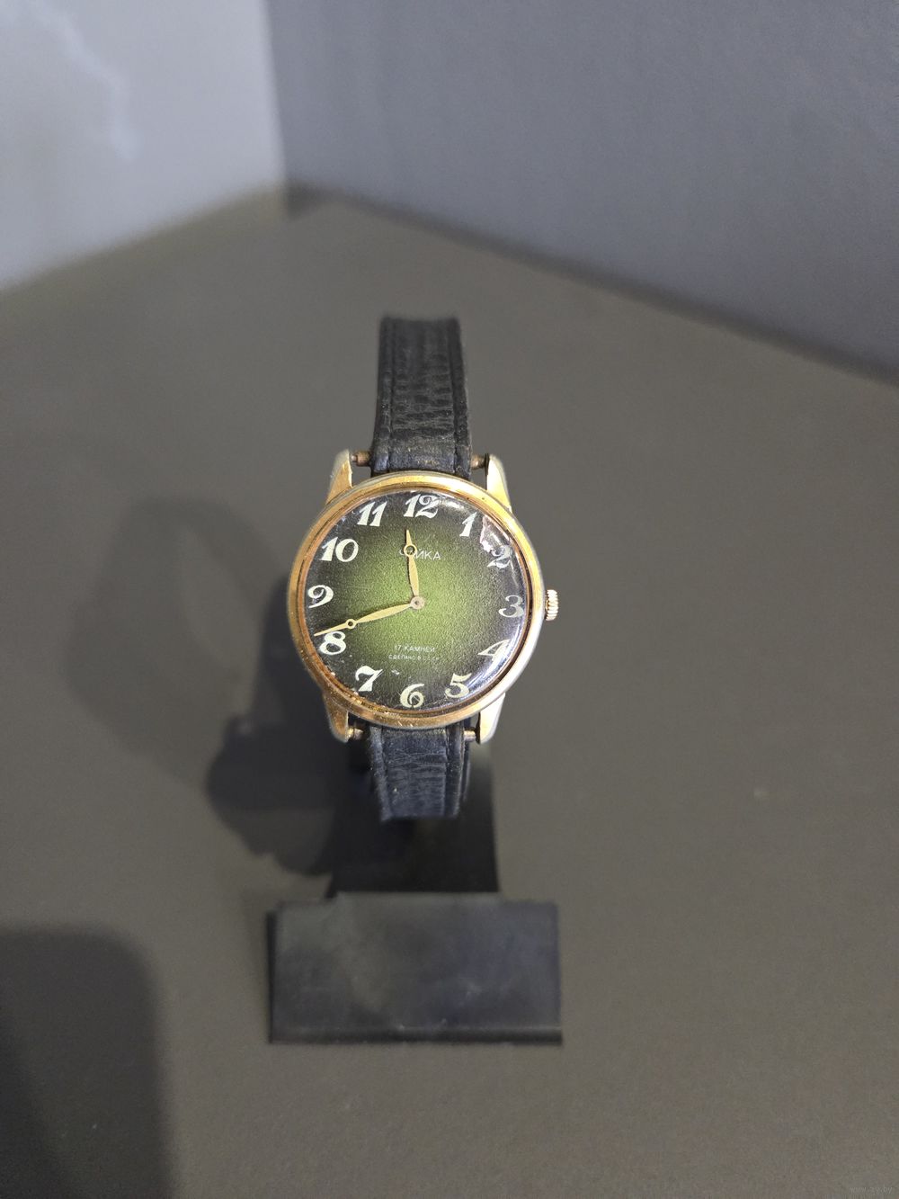 Часы на ходу. Перед тем как поставить в коллекцию, часы были обслужены мастером. Из личной коллекции. Внешний вид на фото. Ремешок и подставка в комплекте.