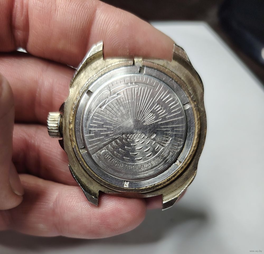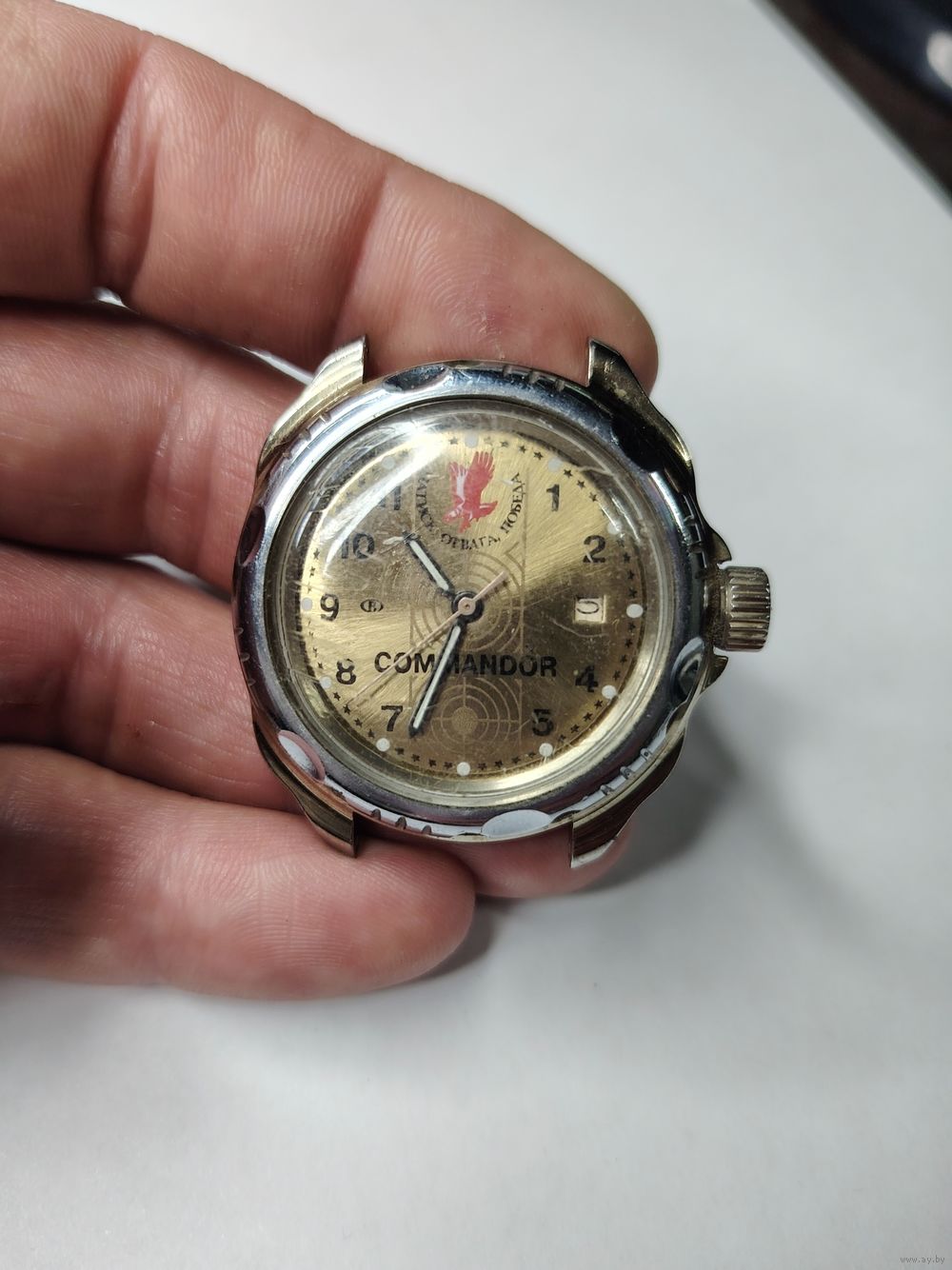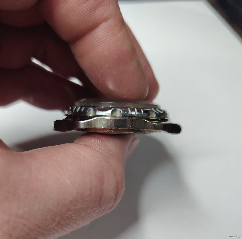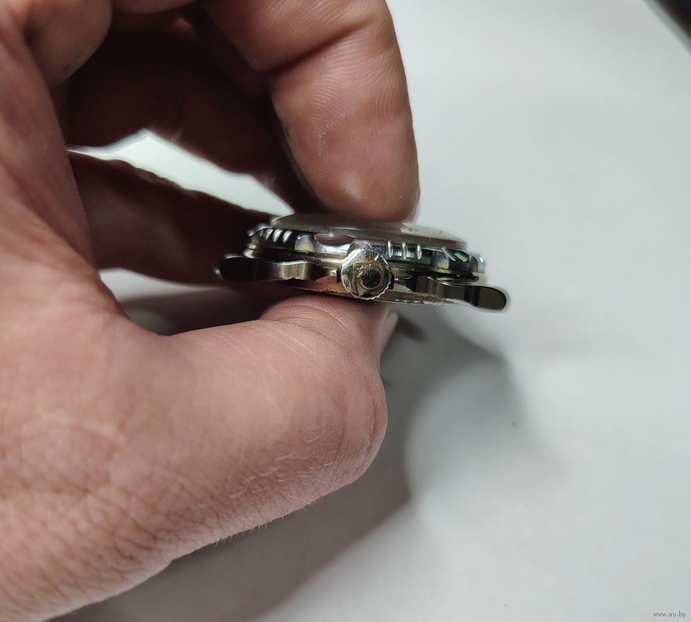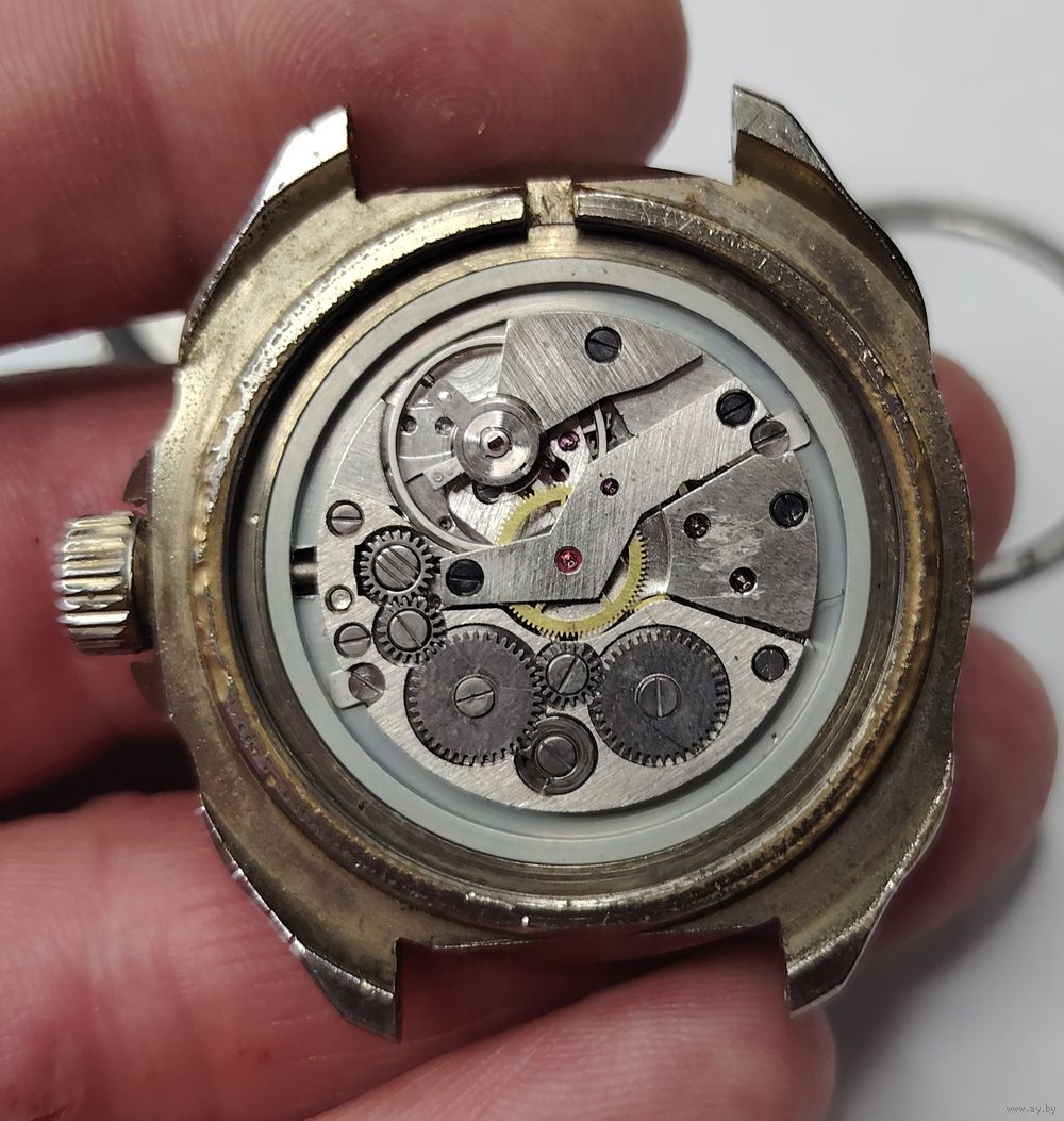 (маятник живой, но секундная стрелка дергается на месте, заводная головка досталась полностью)