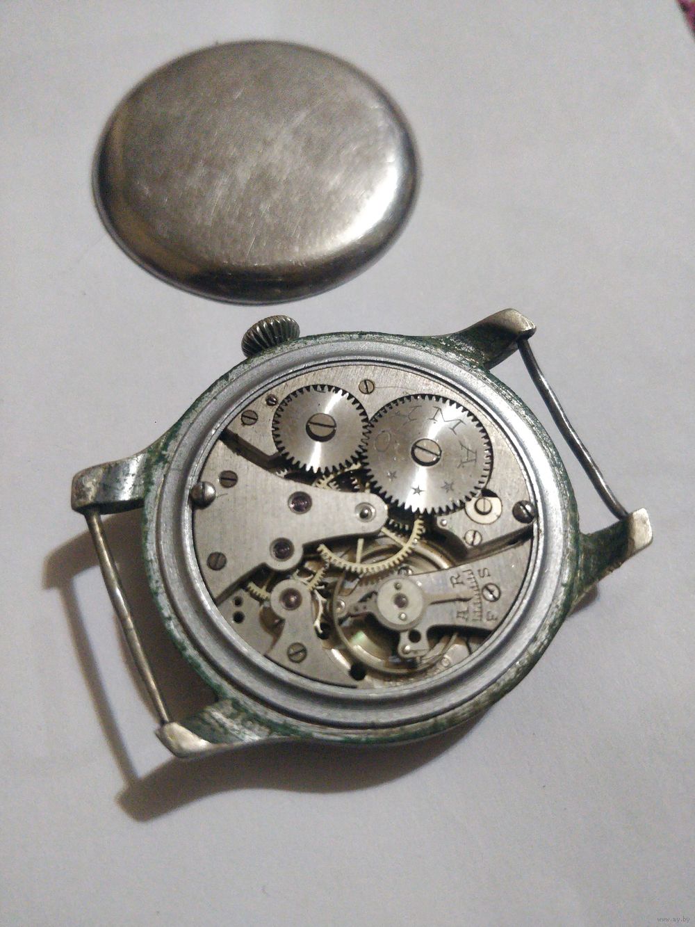Дата выпуска 1930-1940. Часы несмотря на изношенное состояние работают, имеют клеймо торговой марки Arfos. Калибр имеет сходство с Rebberg, FHF (Rolex)