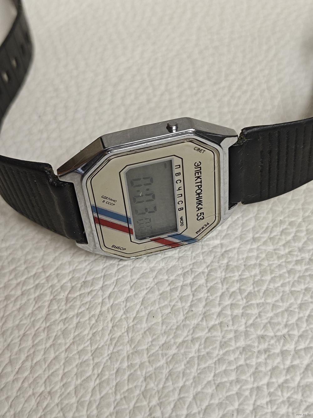 Винтажные советские электронные часы «Электроника 53». Состояние на фото. С батарейкой циферблат работает,в настройках не разбирался. Перед тем как сделать ставку изучите фото.