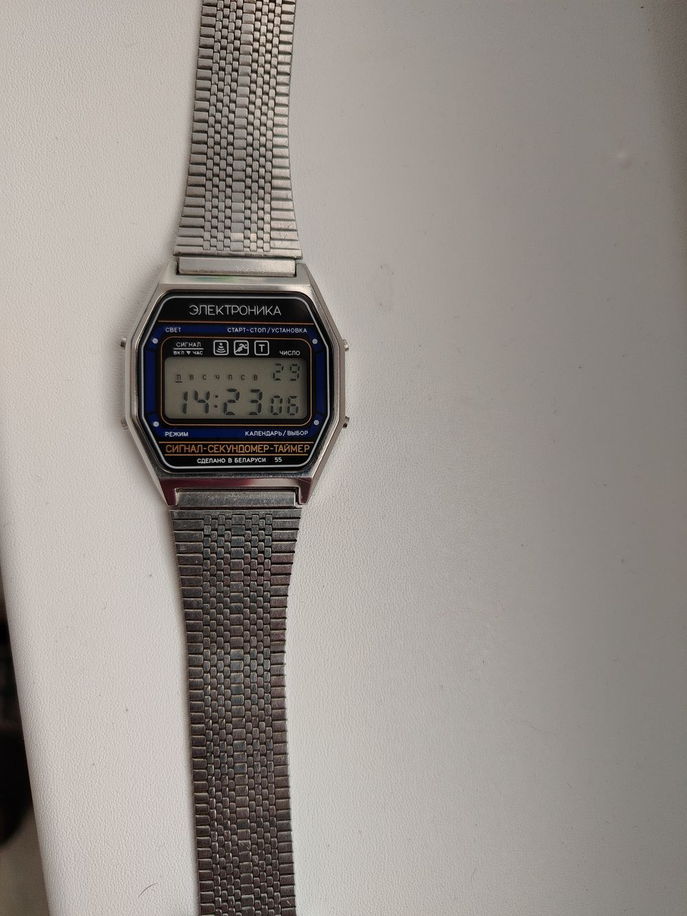 новые часы электроника 55 корпус кнопки нержавеющая сталь