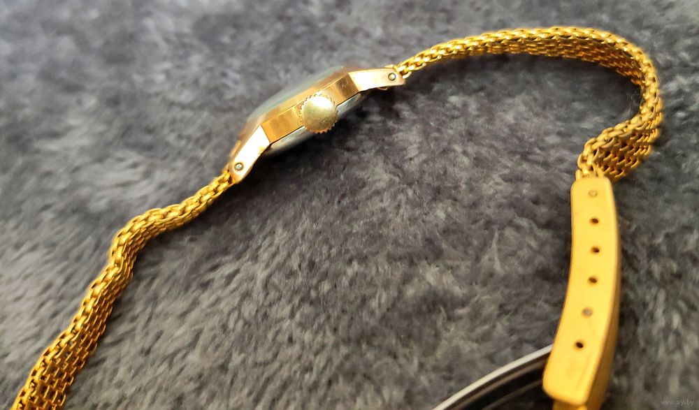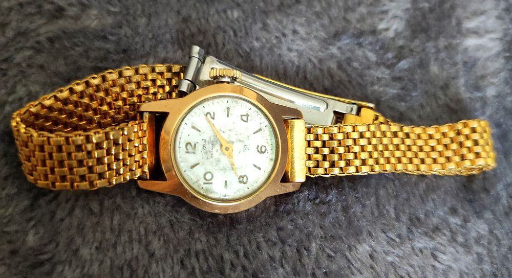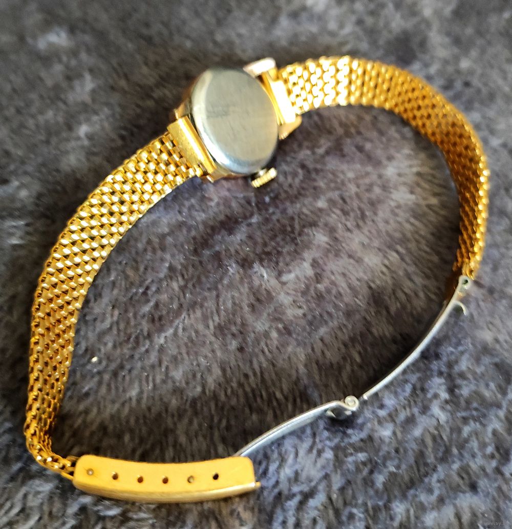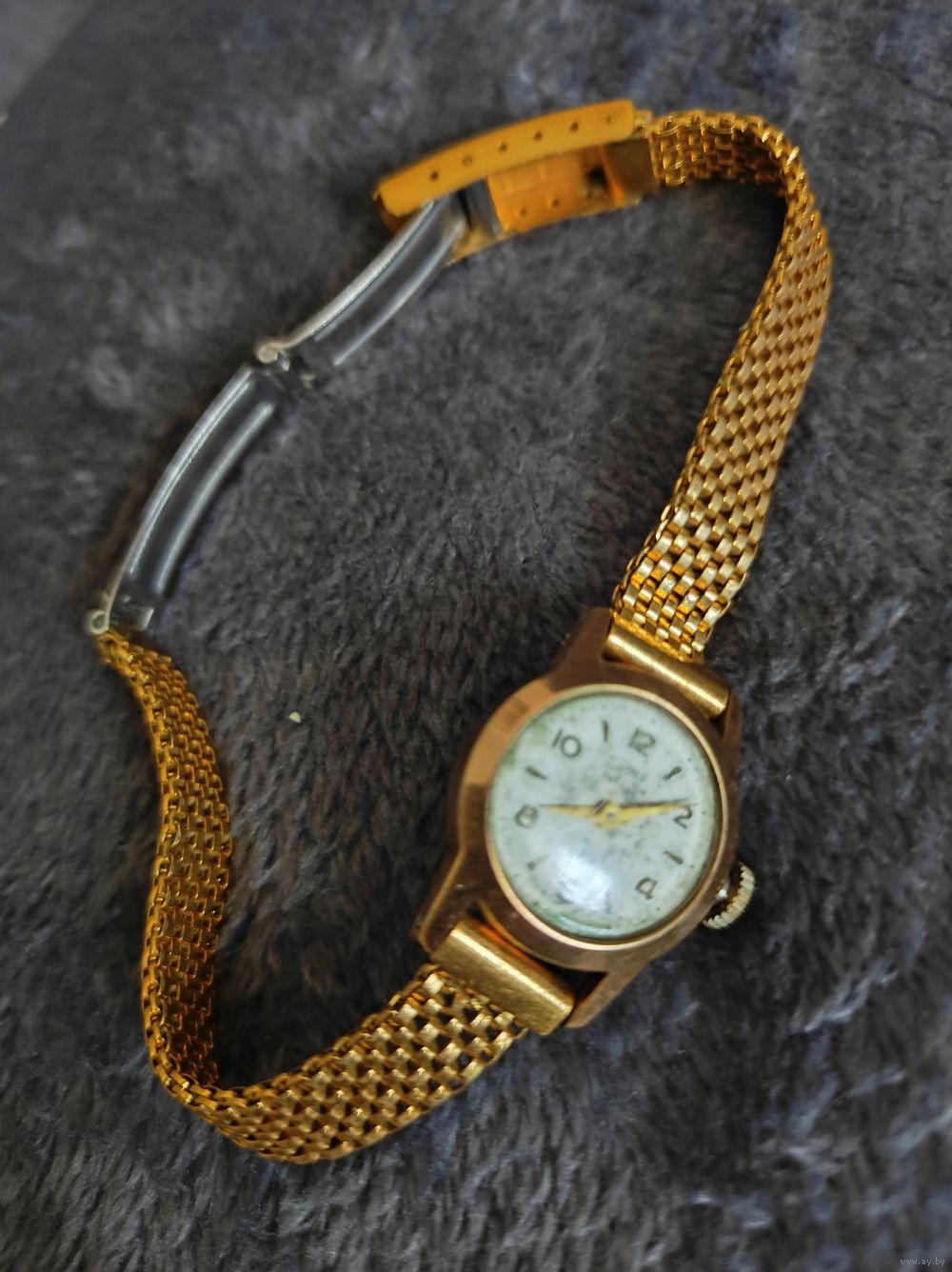 Винтажные Часы Эра наручные, женские, в позолоченном корпусе и с позолоченным браслетом.