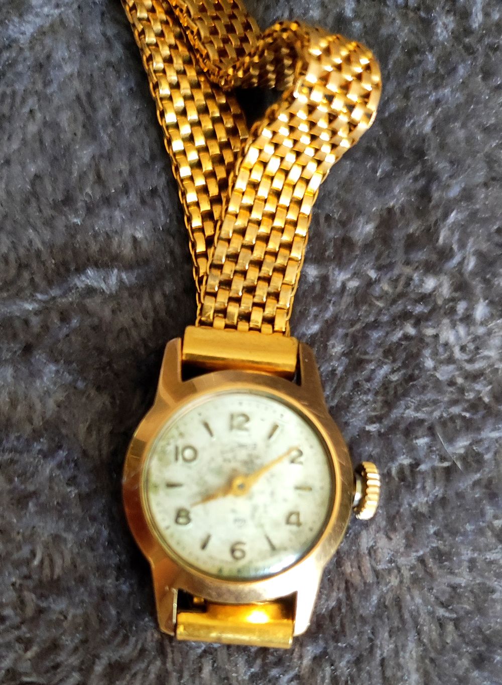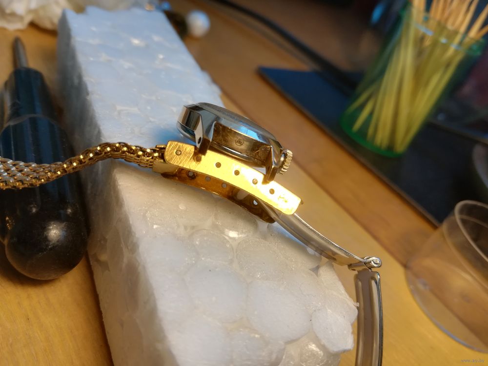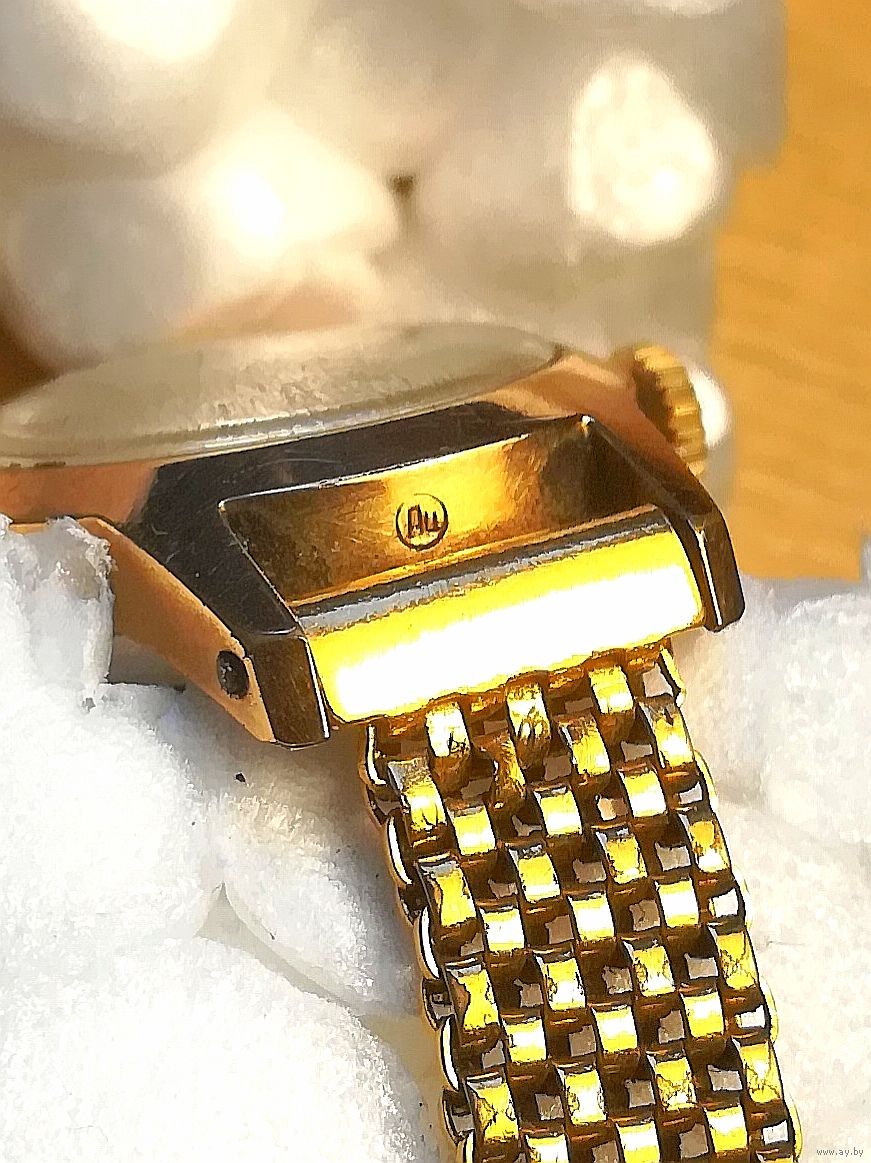 Винтажные Часы Эра наручные, женские, в позолоченном корпусе и с позолоченным браслетом.
