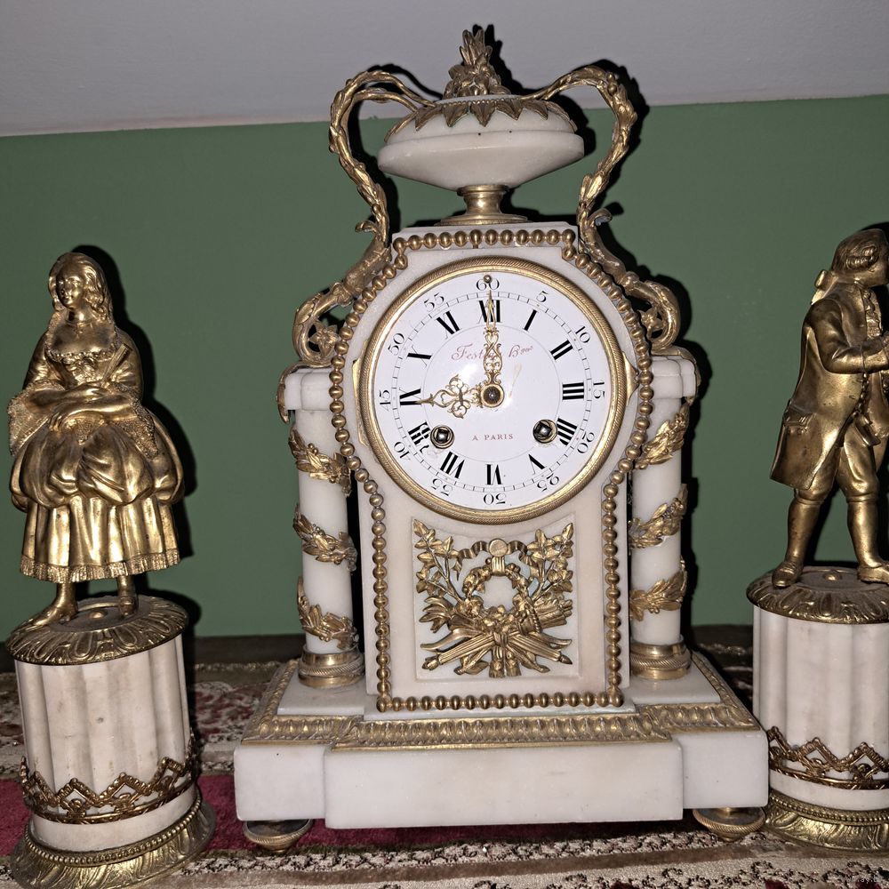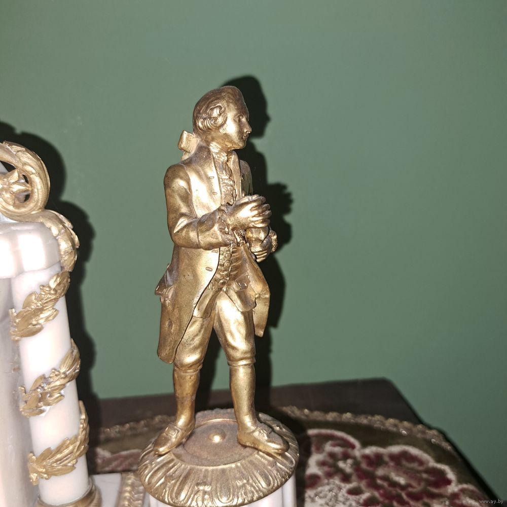 Часы в отличном состоянии. На ходу. Бронза позолота, белый мрамор. Бонус две статуэтки .Бронза позолота, мрамор.