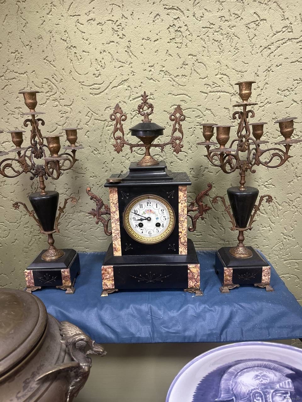 Часы каминные с канделябрами. механические с боем