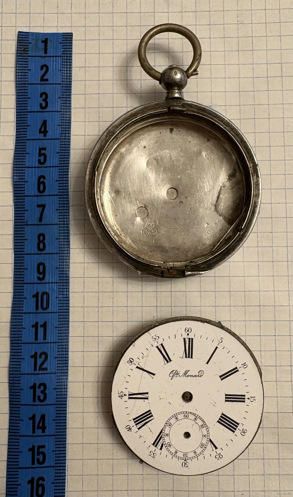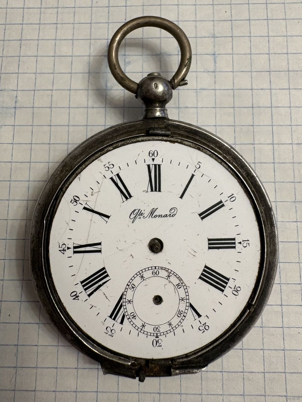 Часы карманные 84 пробы Qte Monard . 15 камней . Швейцария . Механизм не исправный .