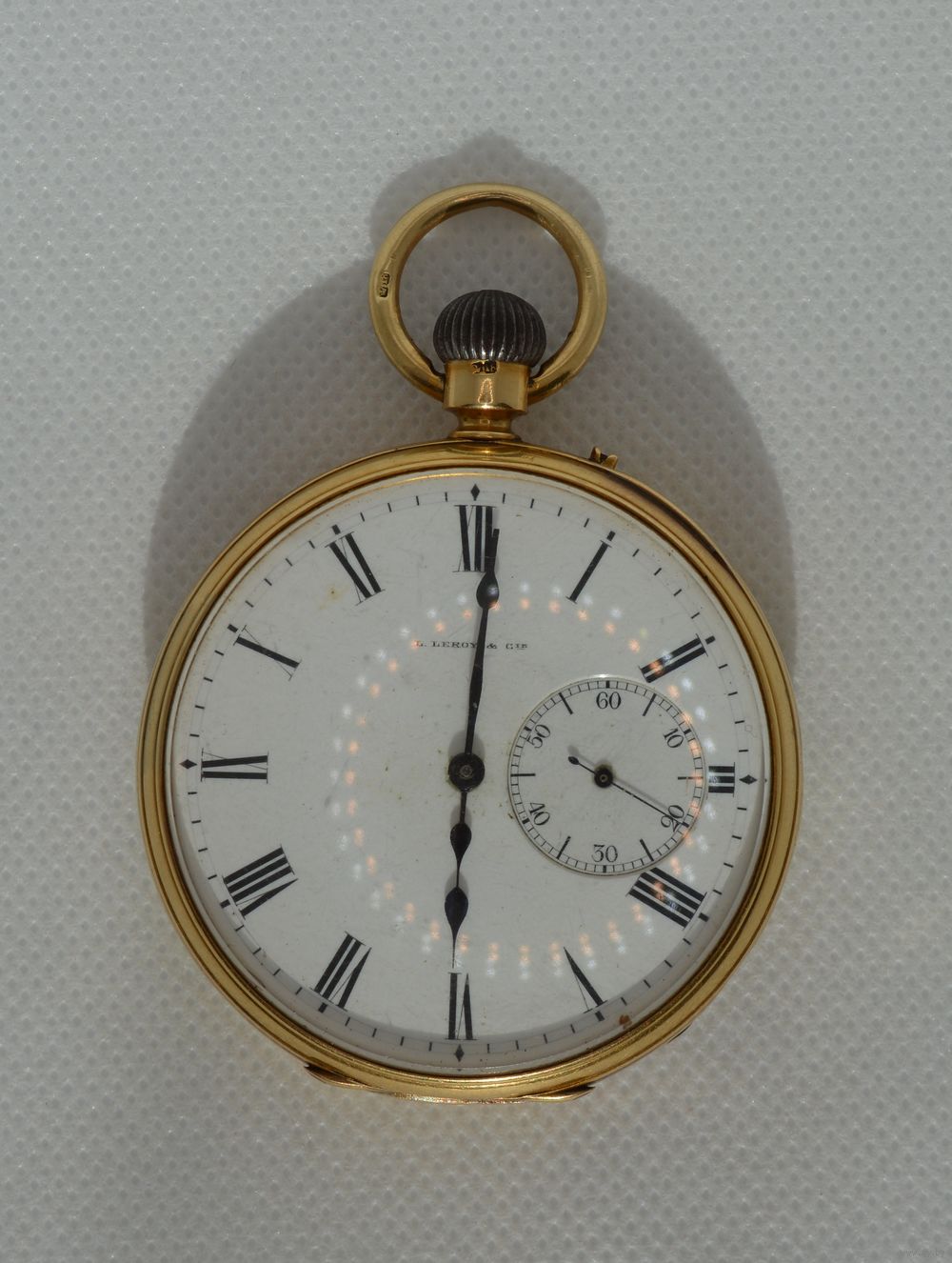 Антикварные карманные часы "L.Leroy & GIE" в золотом (18К) корпусе. Диаметр корпуса - 53 мм. Проба 18К соответствует 750 в метрической системе. Конец ХIX - начало ХХ века. На ходу. Не чистились. Общий вес - 106,35 гр.