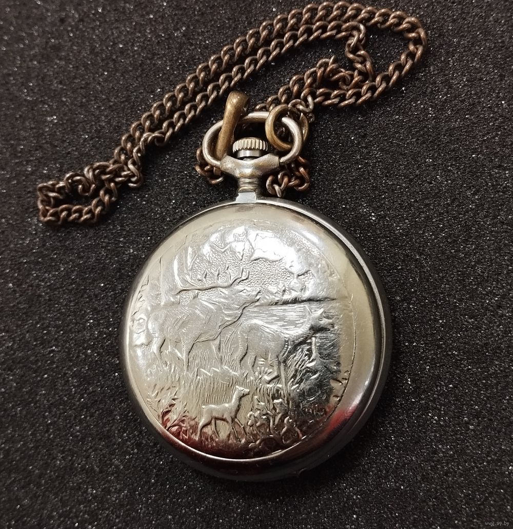 Часы карманные Молния (Охота, Олени), механические. СССР