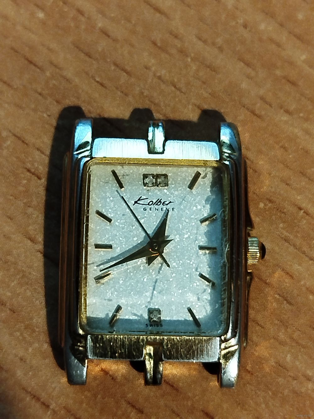 Есть потертости позолоты, на стекле пару царапин и один мини скол. Установлена хорошая новая батарейка renata 379. Часы продаются вместе с кожаным ремешком, но у него крайне печальное состояние.