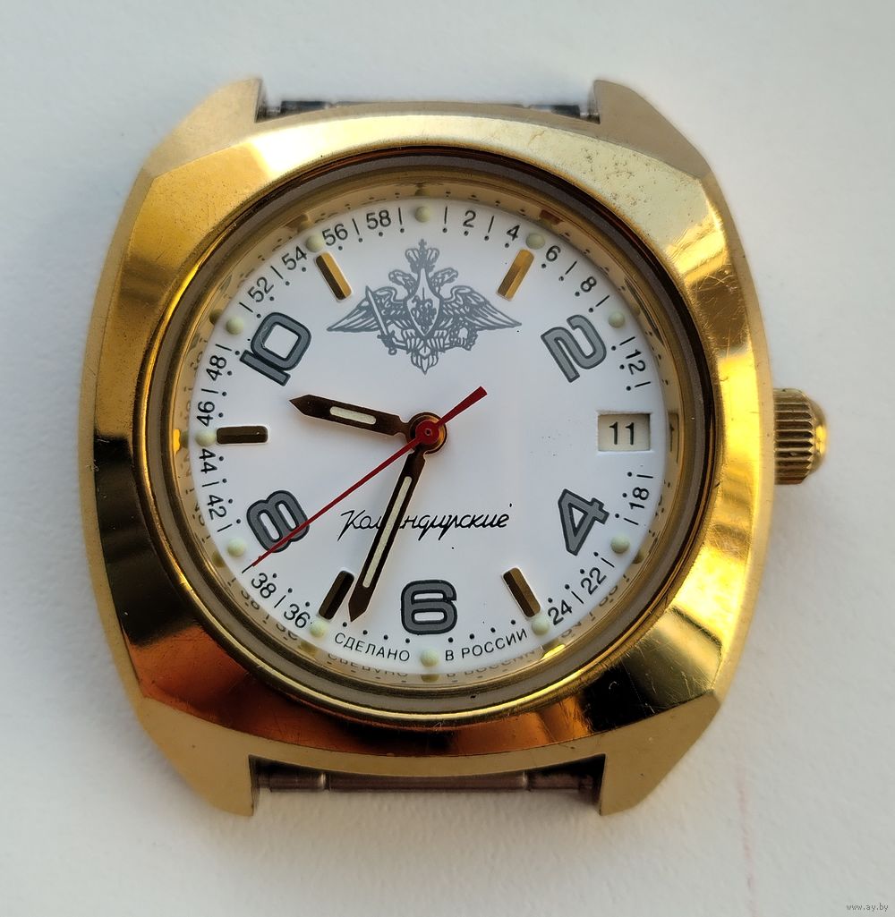 Российские механические наручные часы Восток «Командирские» в позолоченном корпусе.