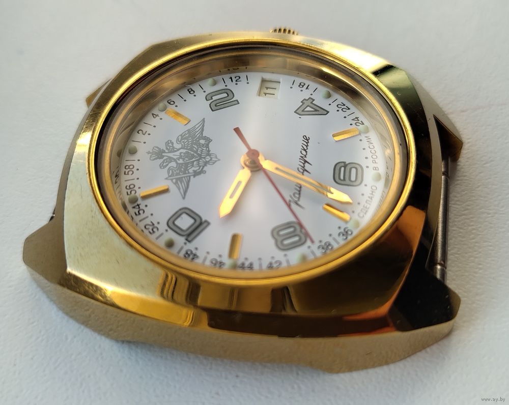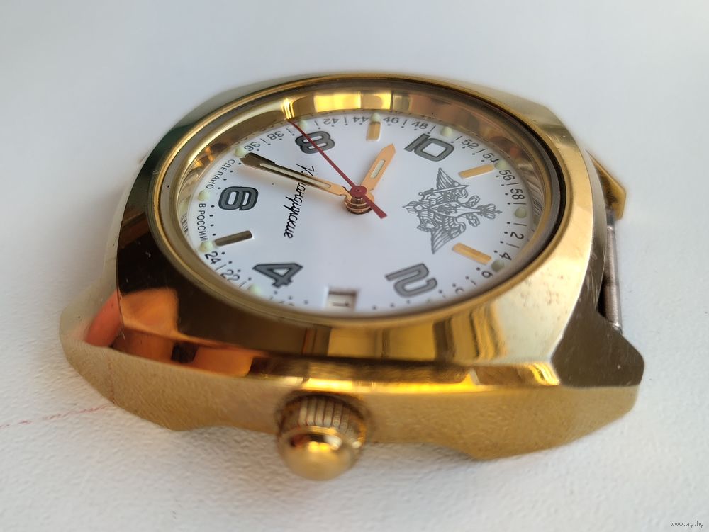 Особенности дизайна: Белый циферблат с изображением герба РФ (двуглавого орла) и надписью «Сделано в России».
