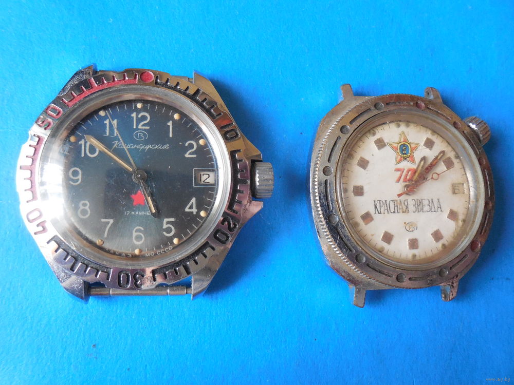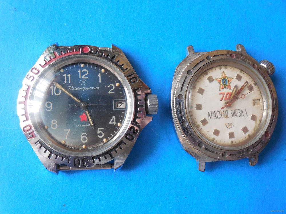 командирские заводятся, идут, секундная бегает. часовая стрелка не двигается. вторые часы не идут. состояние на фото.
