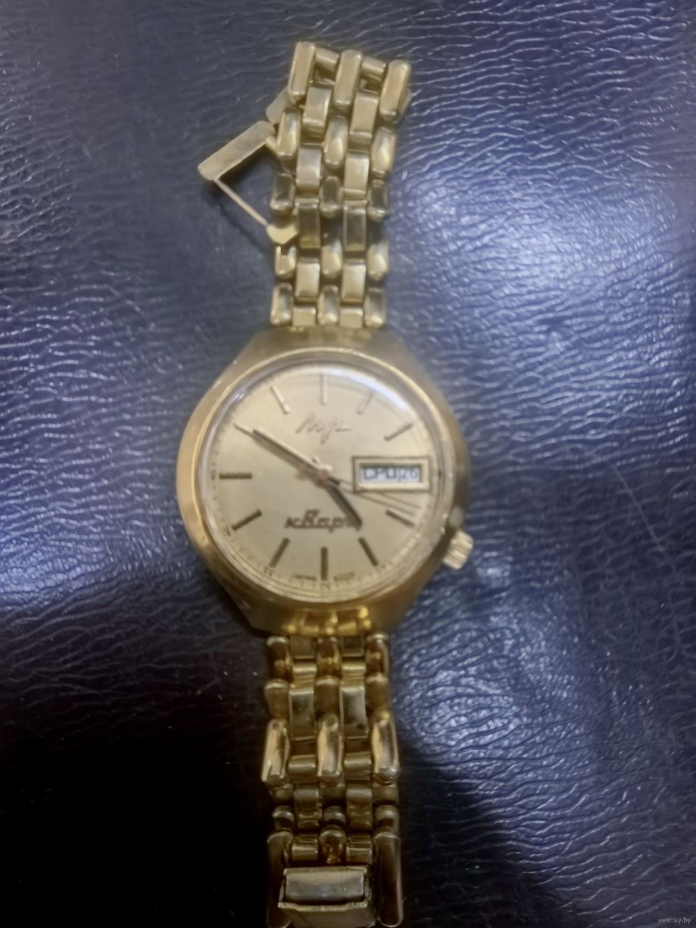 Часы производства СССР 1981 года. Позолоченный корпус и механизм. Очень редкие по конструкции часы Луч. Механизм на 18 камнях гибридный с сочетанием механики и электроники. Исправные в нормальном рабочем состоянии и с хорошим ходом.