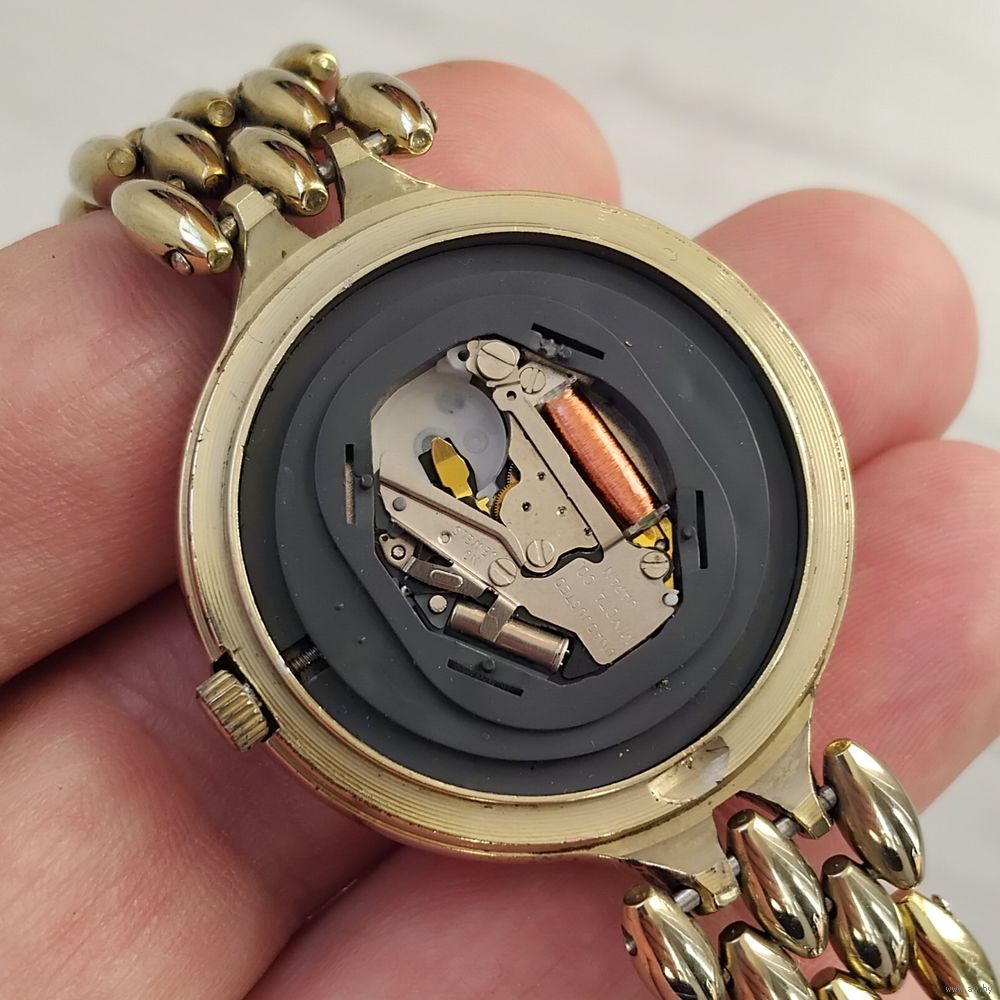 | Внешнее состояние на фото. Цвет корпуса светло жёлтый. Стекло без трещин и царапин. Застёжка держит уверенно. От батарейки не пошли. | |