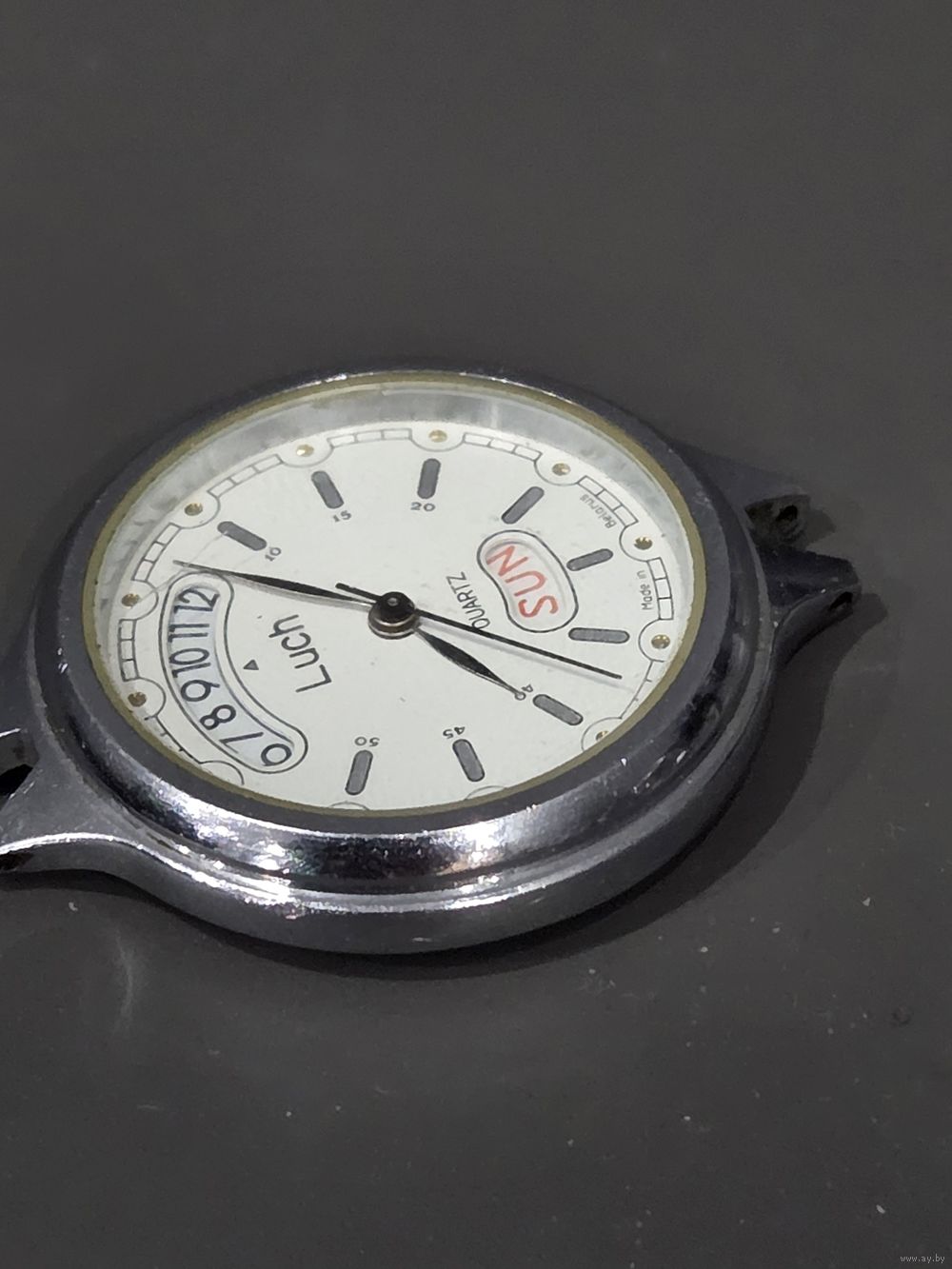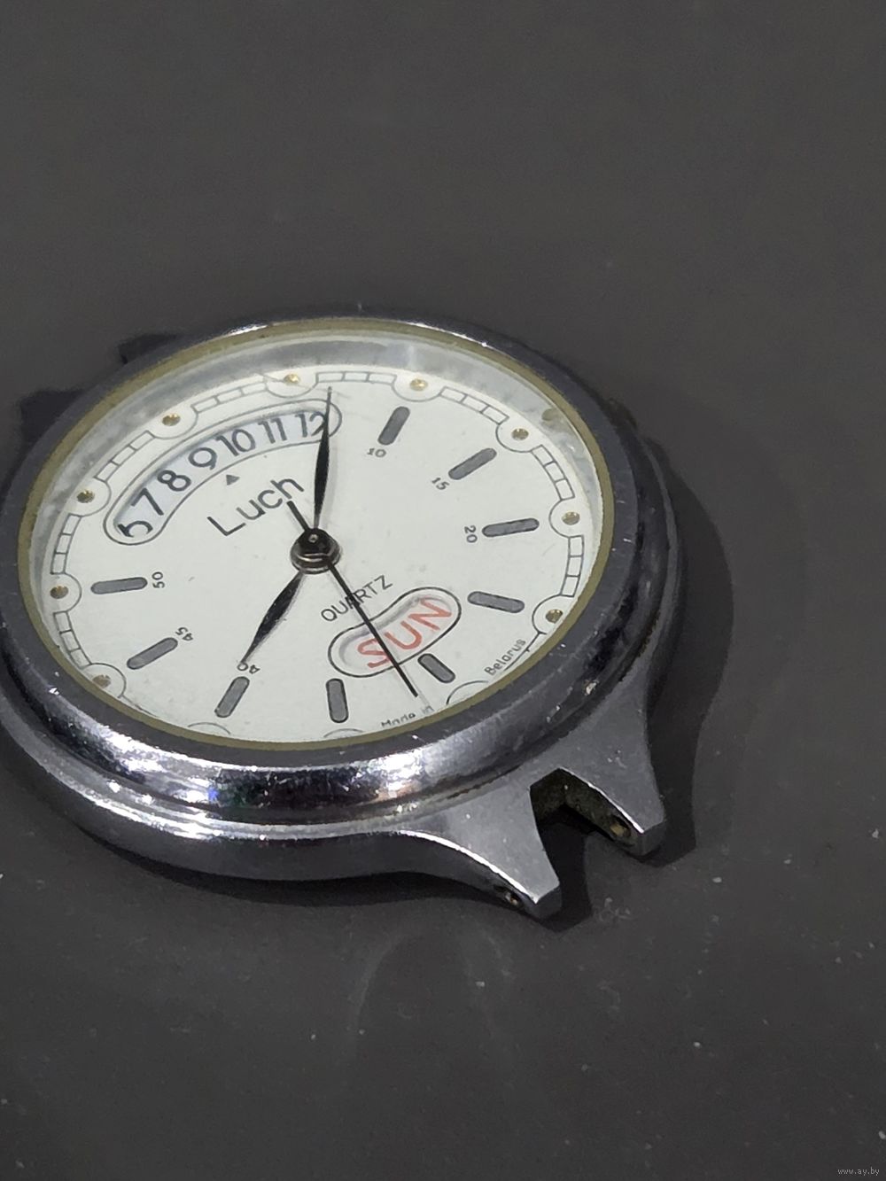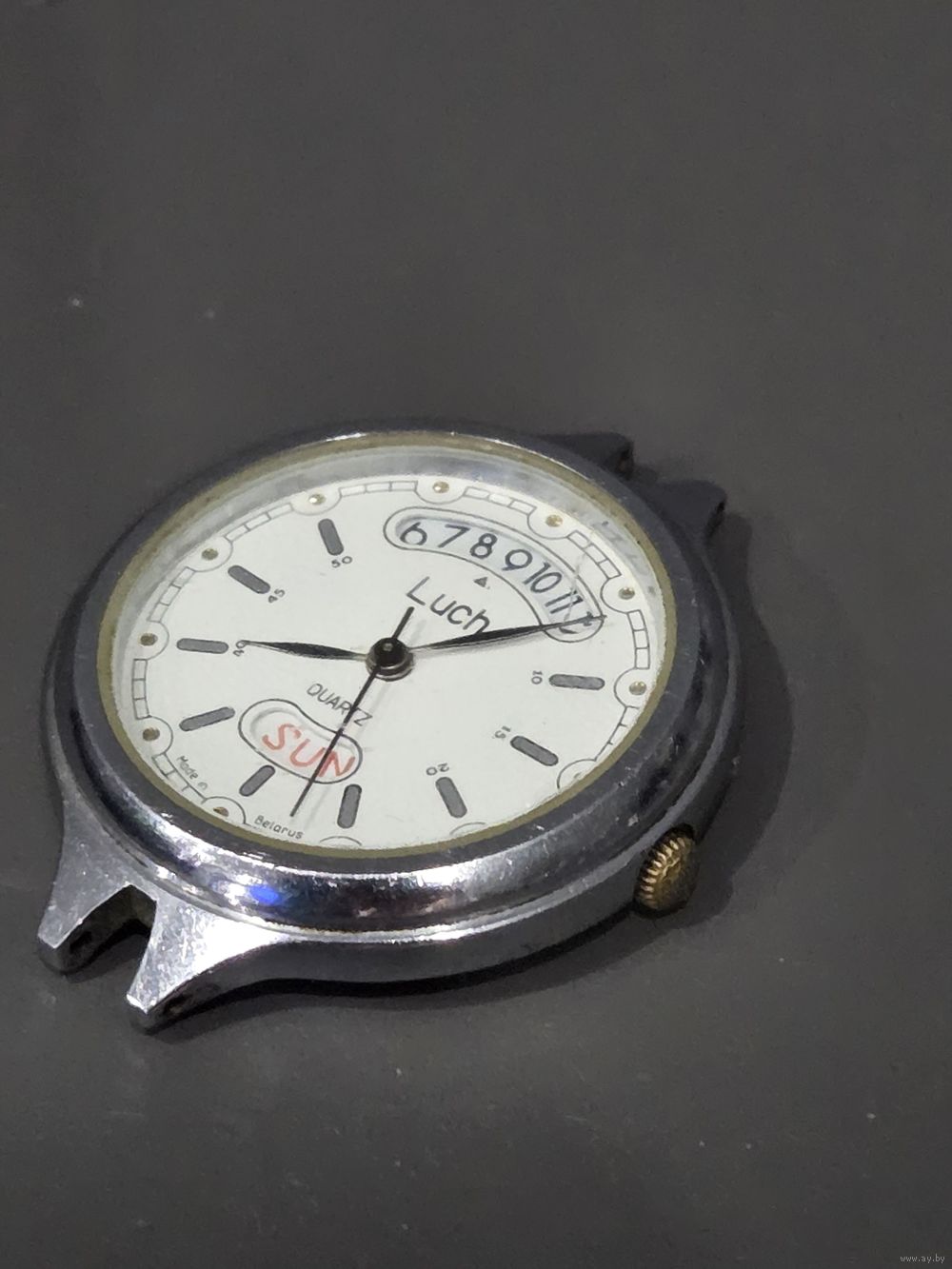 Внешний вид и состояние на фото. Часы на точном ходу, календарь работает, дни недели тоже. Часы из личной коллекции. Ремешок и подставка в комплекте.