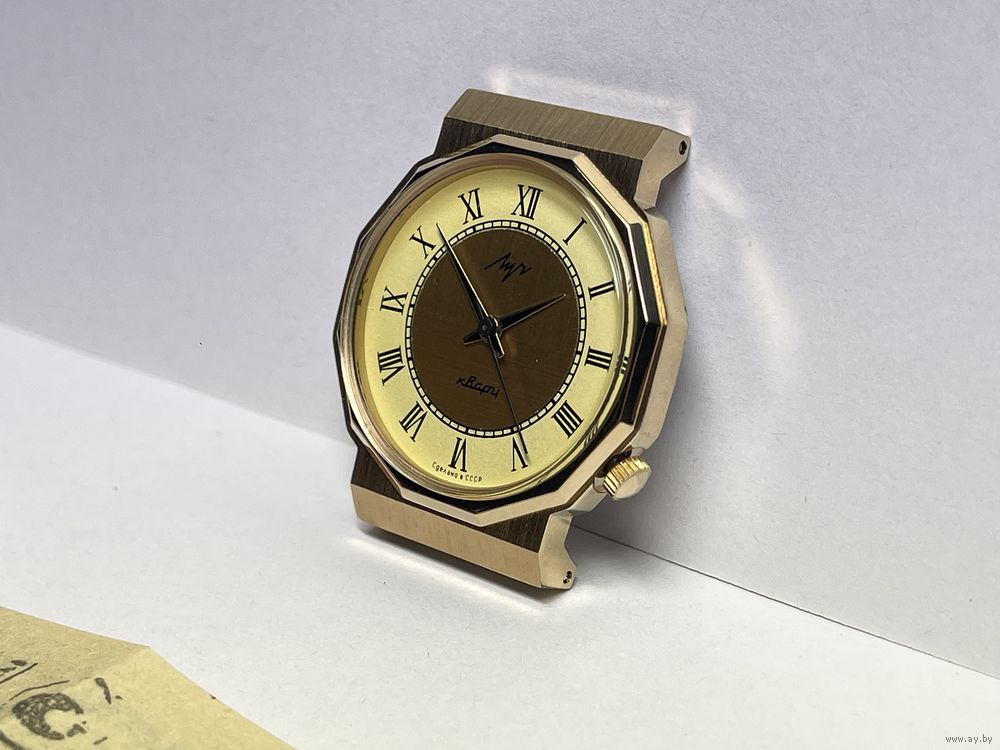 Редкие новые позолоченные часы,с паспортом и упаковкой
