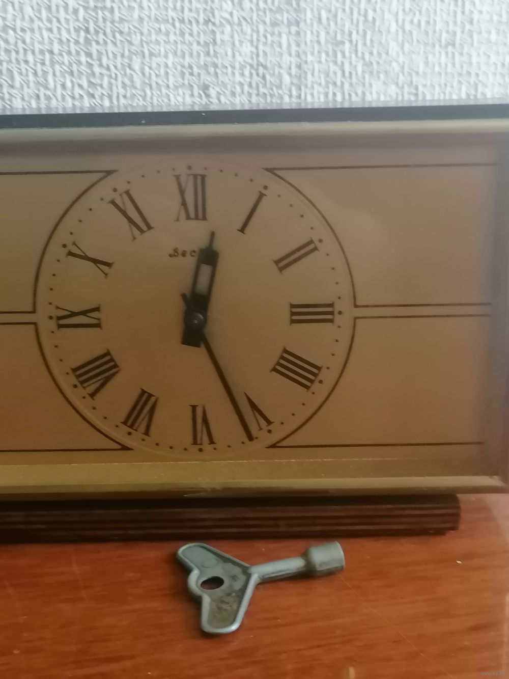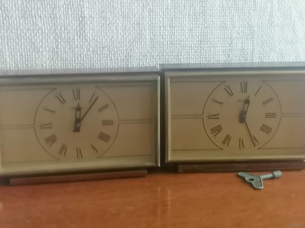 Часы механические настольные Весна.2шт.Ключ.См.фото.Рабочие.Но профилактика не помешает.Справа те возле которых ключ не рабочие давно стояли или почистить или на запчасти.За 2шт.