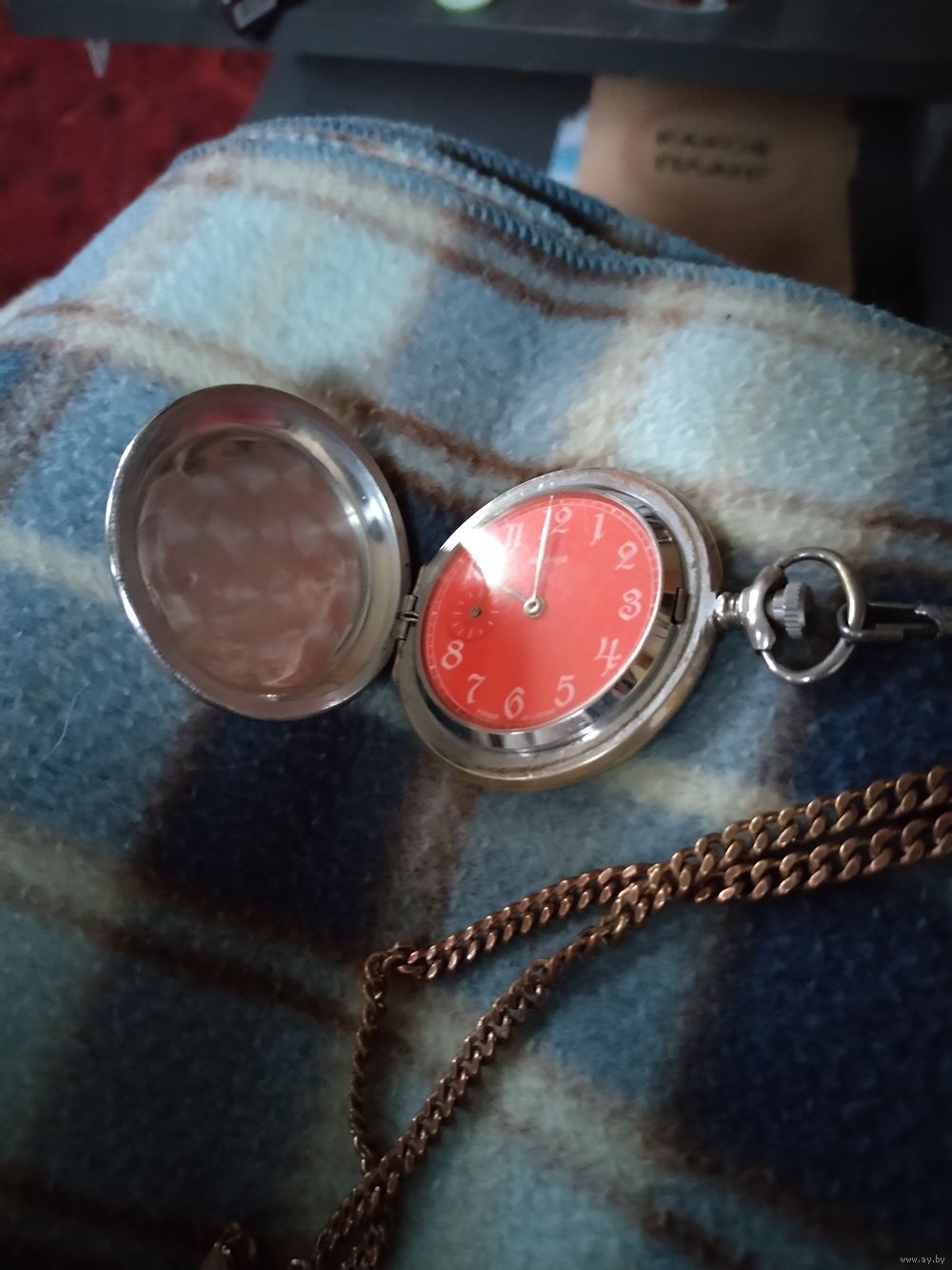 Карманные часы на цепочке Молния серия Тетерев 70-80гг.Есть небольшие потёртости. Механические, идут практически секунда в секунду