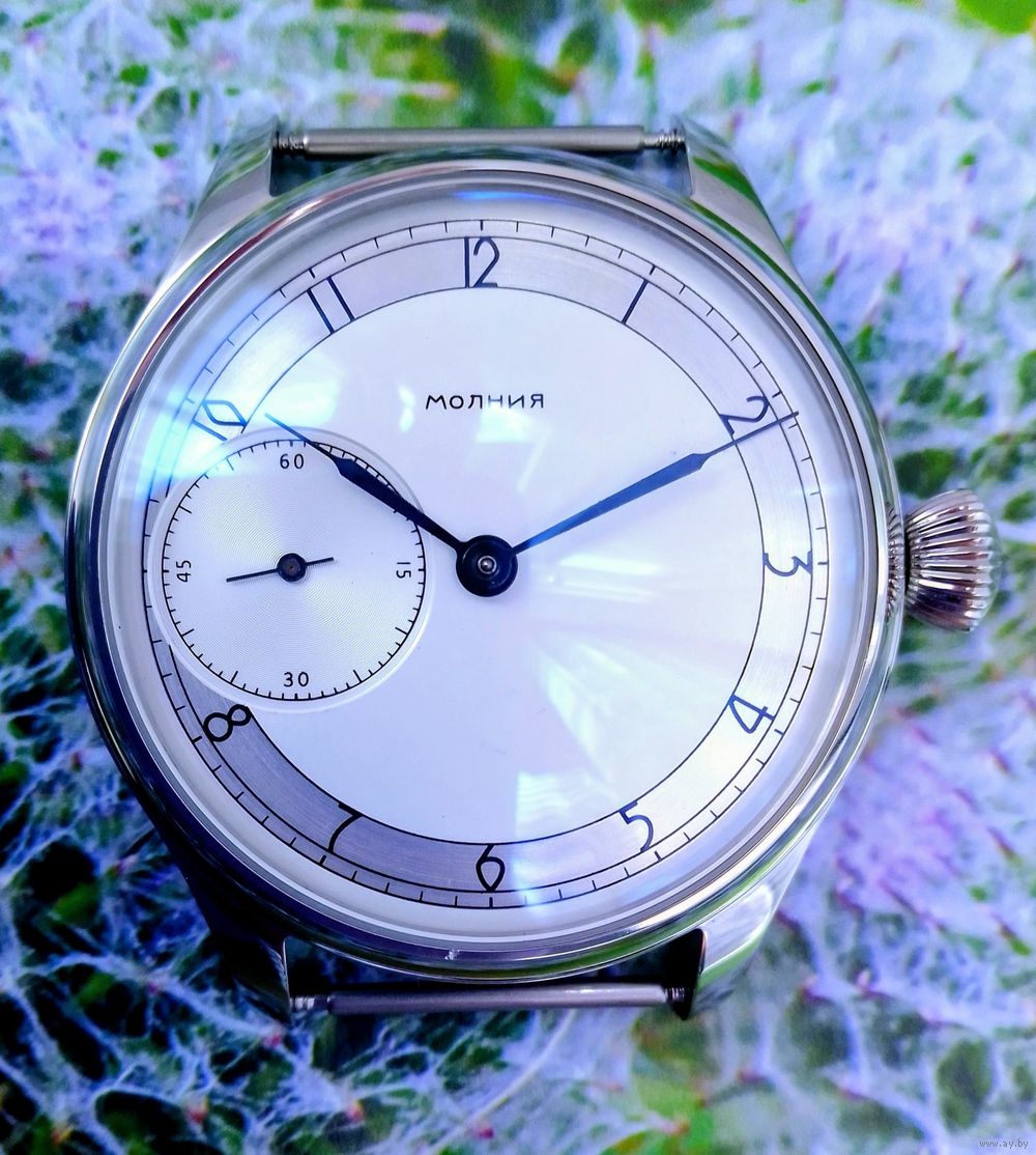 Часы наручные Молния. Механизм 3602 СССР, запас хода 36 часов. Марьяж. Новые, в плёнке. Корпус из нержавеющей стали 316L. Размер корпуса 44 мм, с ключом 49 мм. Стекло: специальное минеральное стекло, устойчивое к царапинам. Толщина: 11 мм. Часы идут в комплекте с новым стальным браслетом. Браслет можно отрегулировать по руке при помощи прилагаемого приспособления.