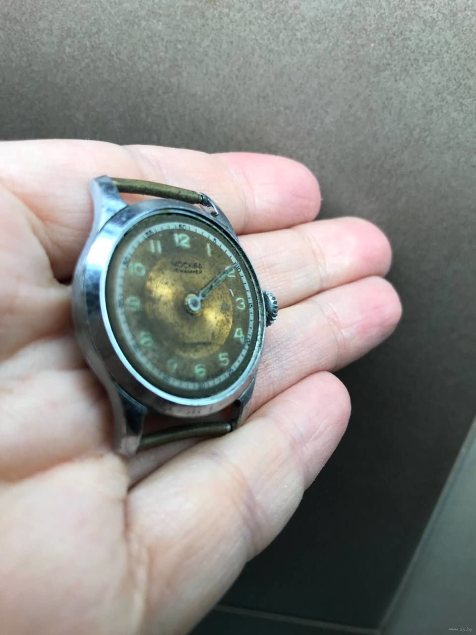 Без стекла, корпус хромированный, состояние видно на фото. Желтый цвет циферблата скорее всего с нанесением латунного покрытия. Стрелки в таких часах часто делали воронеными или позолоченными.
