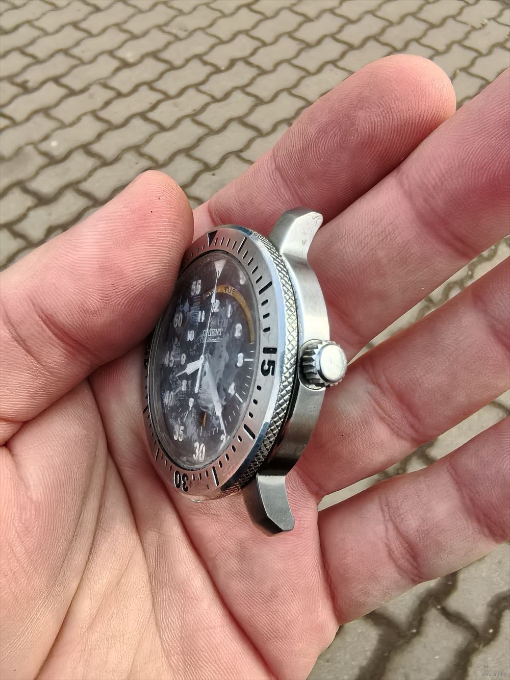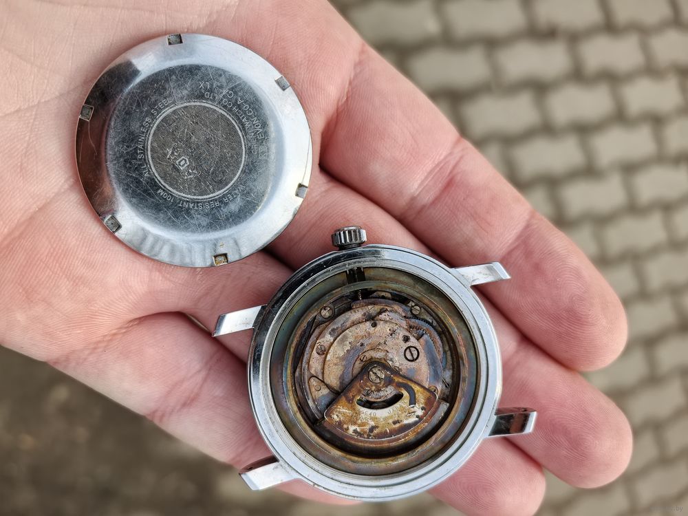 Безель щелкает, головка заводная откручивать и назад закручивается, стекло внутри мутное, циферблат хороший, все на фото