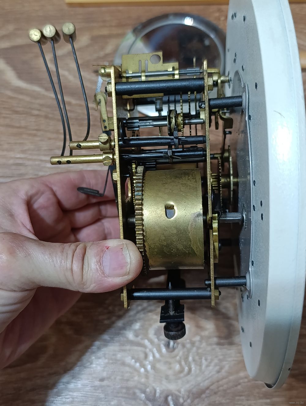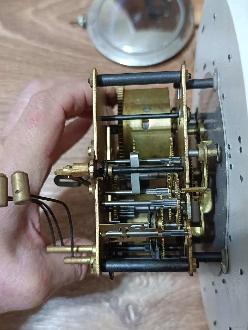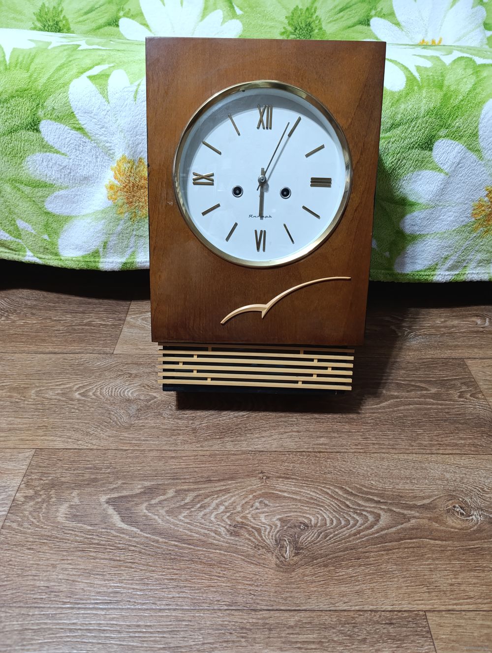 Не на ходу, пружины закручены не сорваны. Решетка внизу поломанные 3 ножки, стёкла целые. Смотрите внимательно две последние фото есть ещё поломка. Ключ от часов прилагается