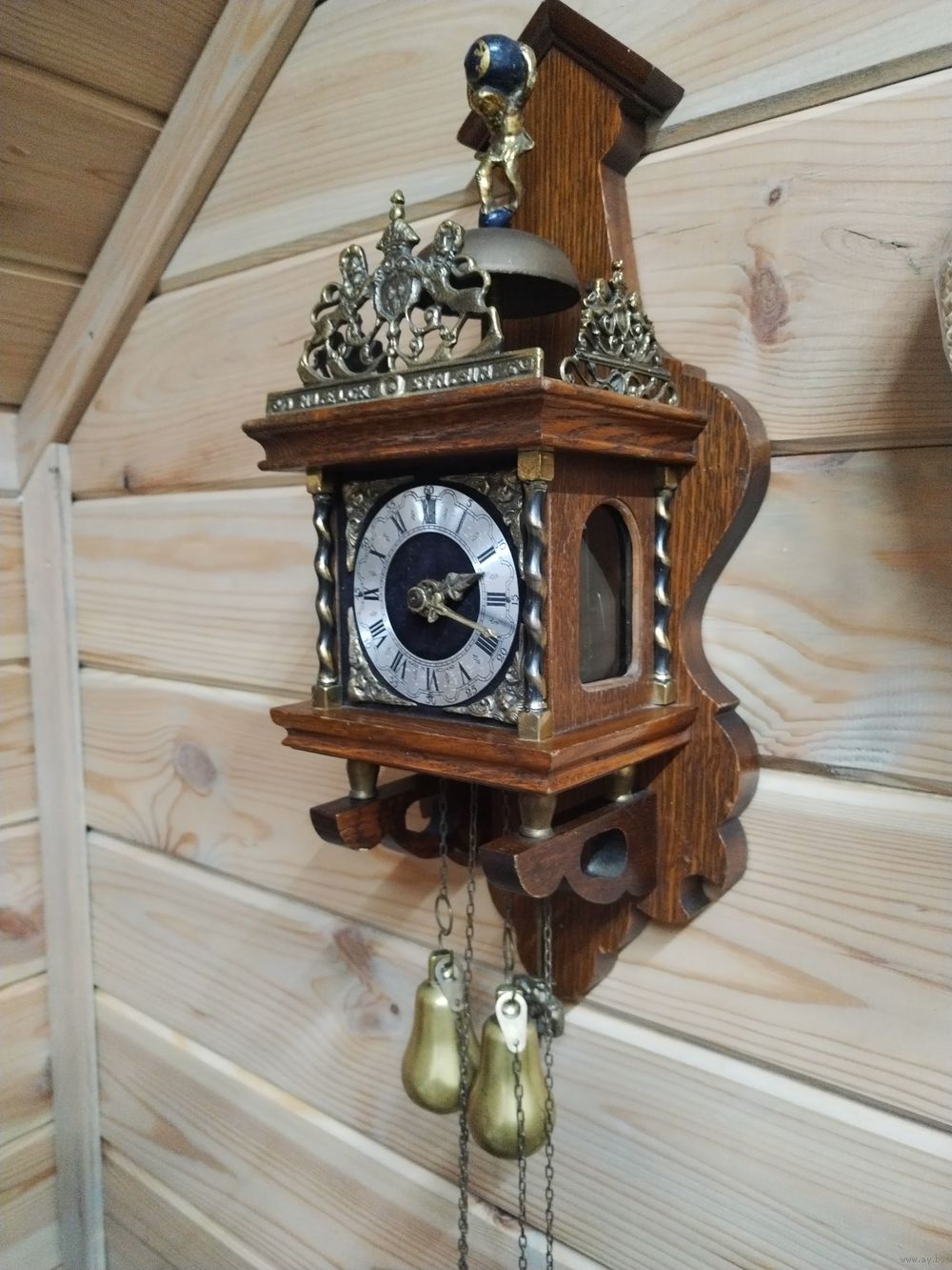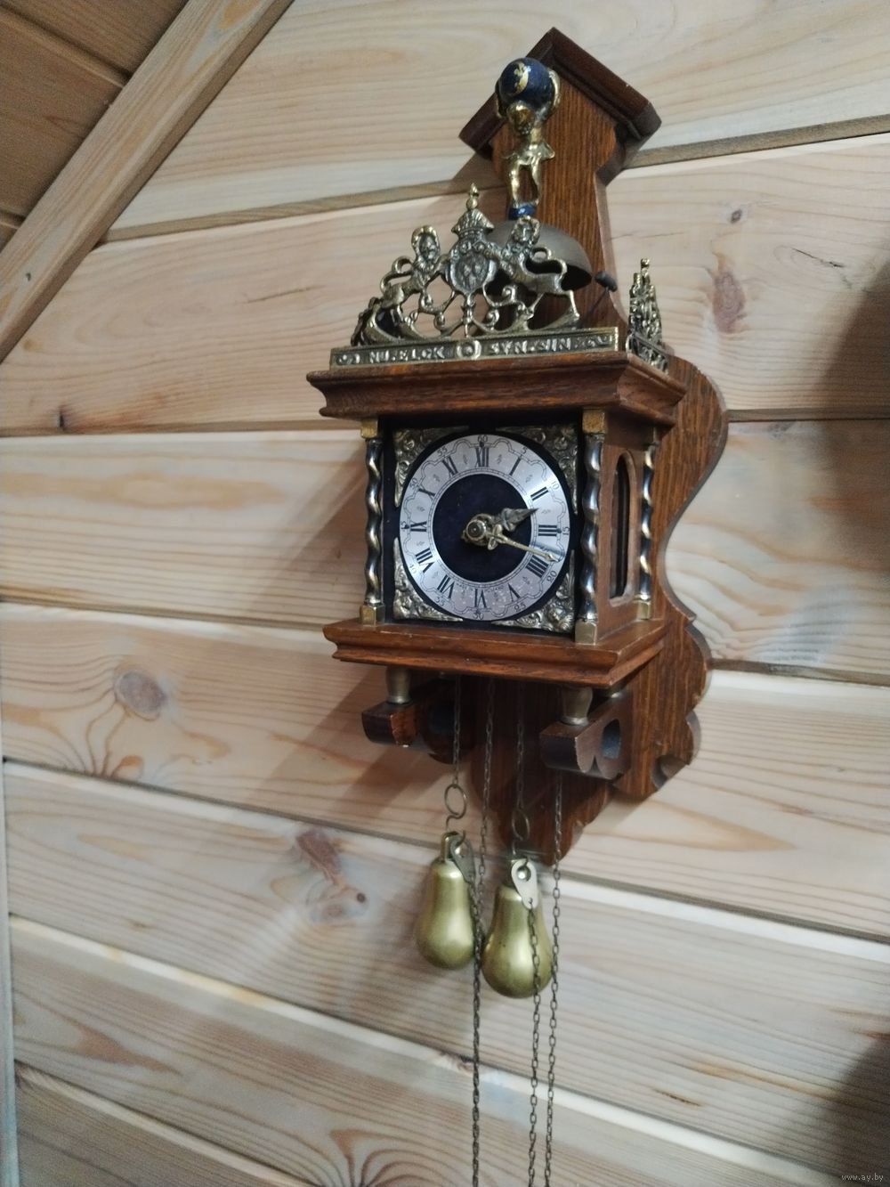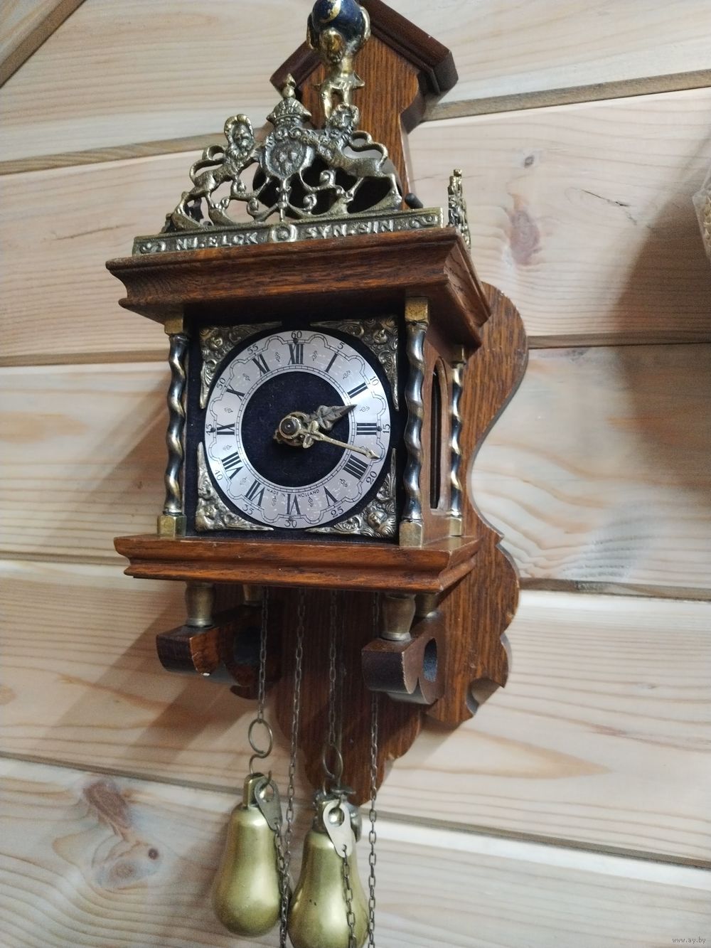 Изящные малые галандские часы. Дерево, латунь. Обслужены.
