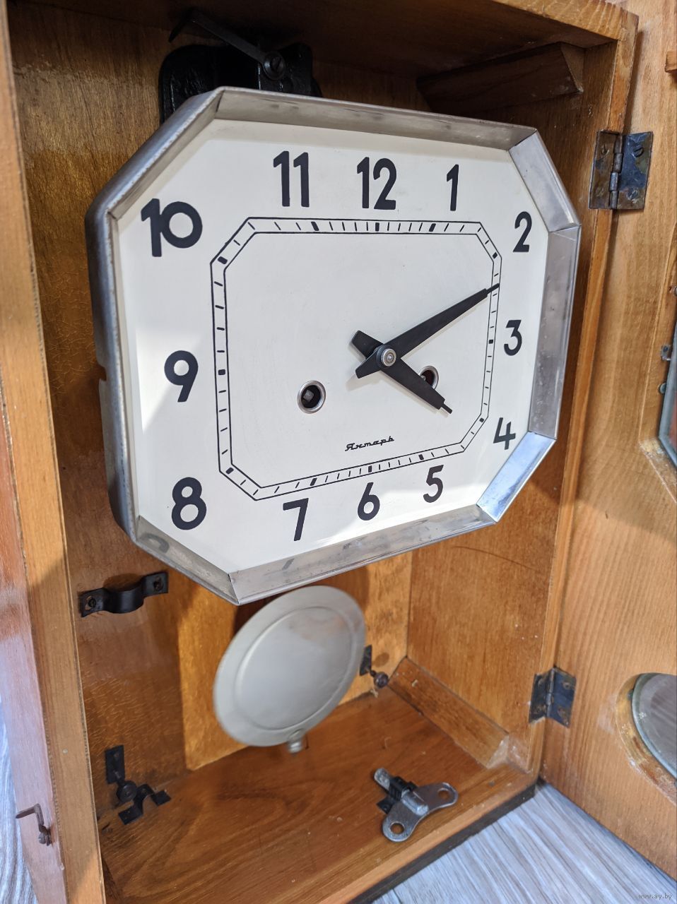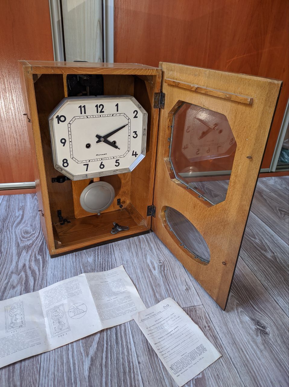 Часы настенные с боем Янтарь СССР 1968г. Хранились в сухом месте. Работают исправно. Инструкция в наличии. Бой через полчаса и каждый час. В два часа - бой два раза, в три- три раза т.п., полчаса просто перезвон