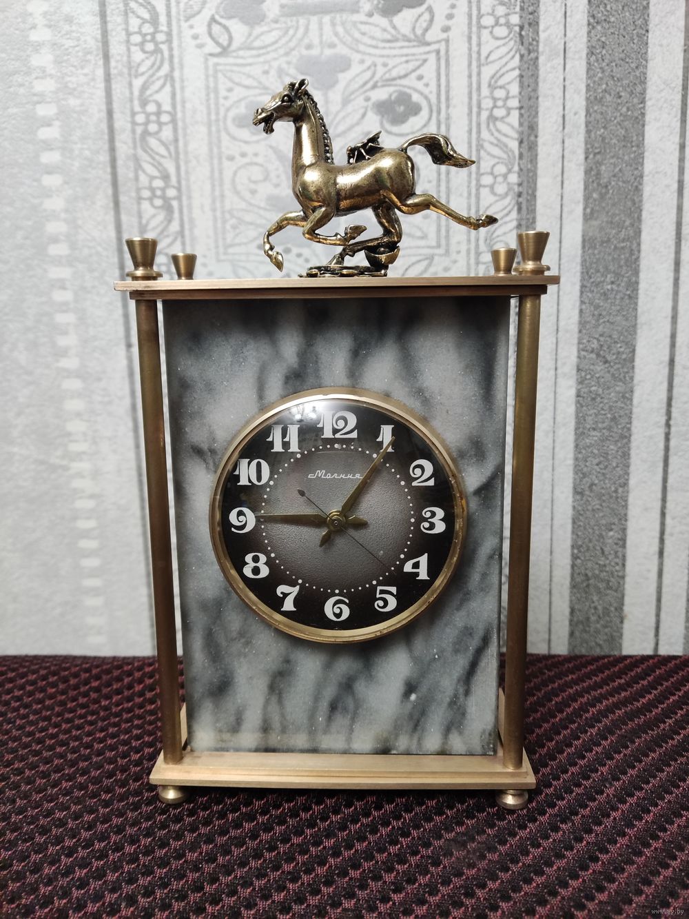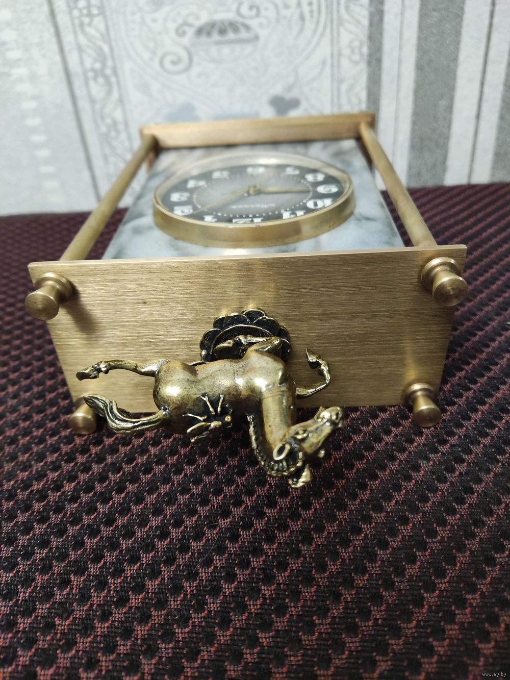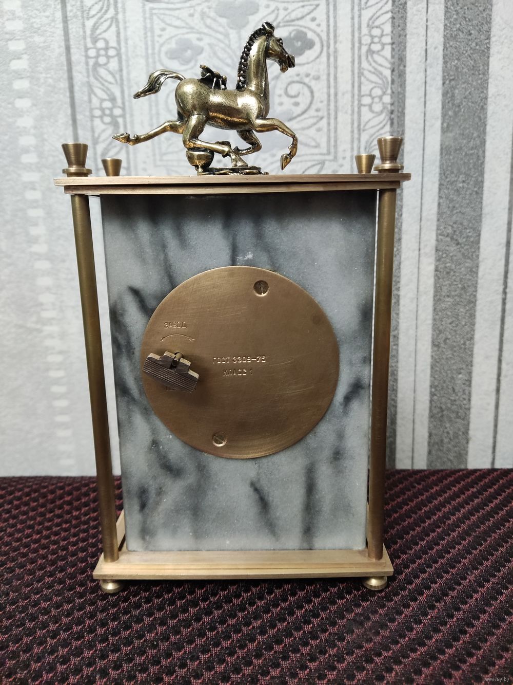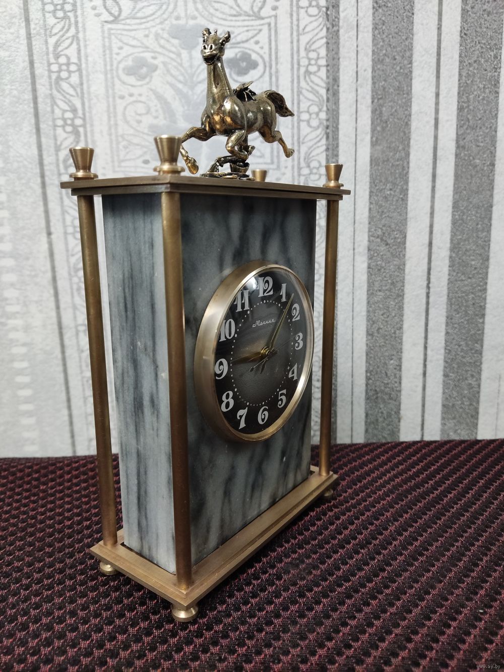 Часы настольные (кабинетные, каминные) механические Молния на камне мрамор. СССР 80-е гг. Рабочие. Бронза/латунь. Высота 22,5 см. Основание 11,5 х 5,5 см. Почищены. Навершие бронзовая статуэтка Лошадка. Отличное состояние, уверенный ход, обслужены мастером. Превосходный подарок к наступающему году Лошади!